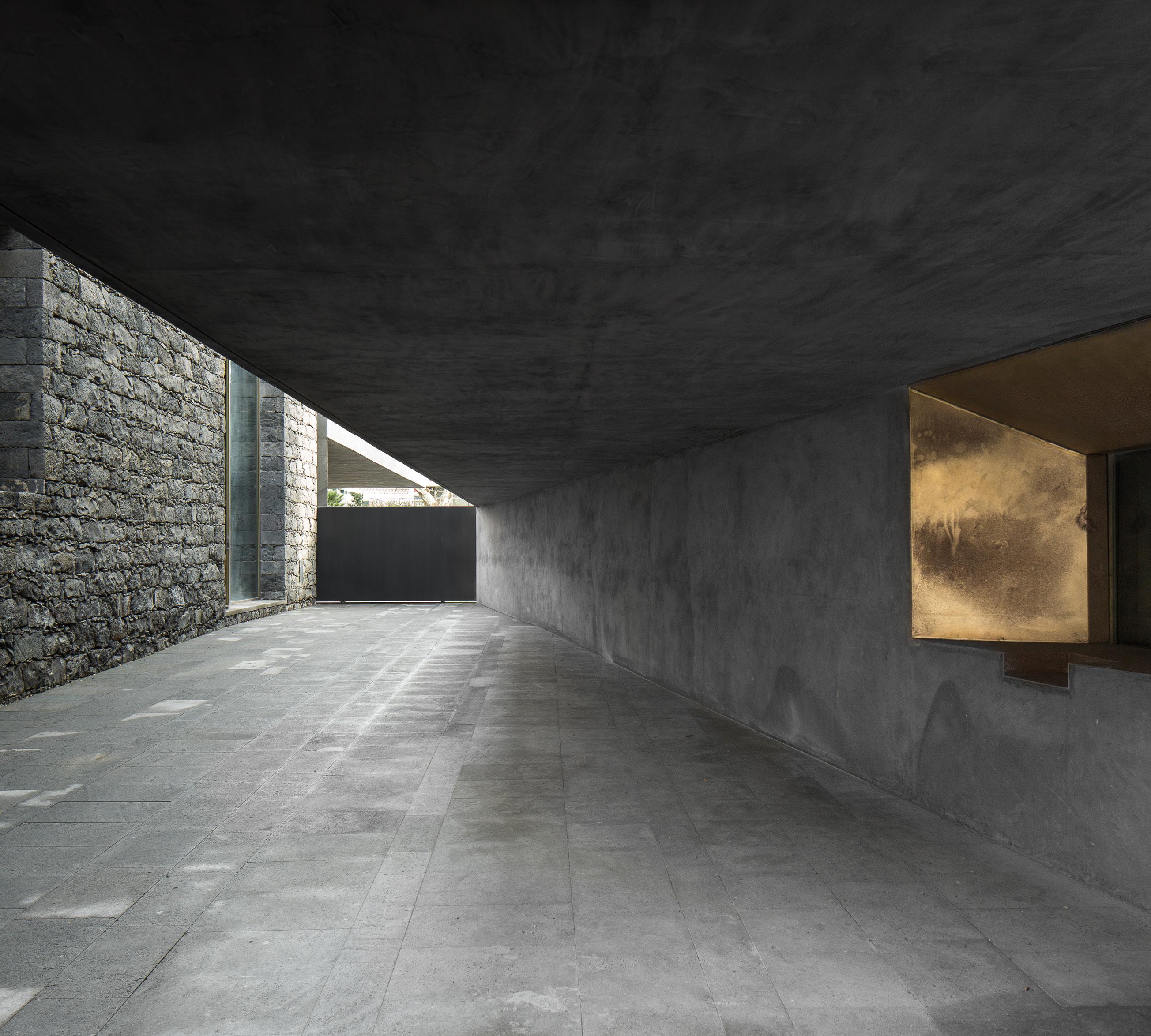 The design does not exaggerate the differences between the old and the new buildings. On the contrary, it seeks to unite the different scales and times of its parts throughout a pictorial manipulation of the form and materiality of the buildings - the existing buildings demarked by the volcanic stone masonry and the new buildings characterized by an abstract form, without reference or allusion to any language, built in concrete with local basalt inert continuously working with the variation of surfaces’ textures and rugosity, complementing the mass of the building with the emptiness of the patios.