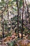 There are no paintings of the Australian bush (as densely scrubby, forested wild areas are called in Australia) that induce, in the viewer, such a strong sense of being in the bush as those of Nicholas Harding. One feels that one could scramble forward, over fallen trees and branches, turn around and struggle the other way, or rest on a rock, outstretched fingers breaking the spray of a small, cold waterfall.