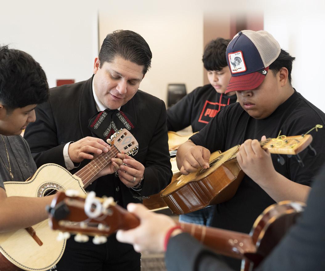 Mariachi Garibaldi de Jaime Cuéllar members teach a workshop at Carpinteria High School