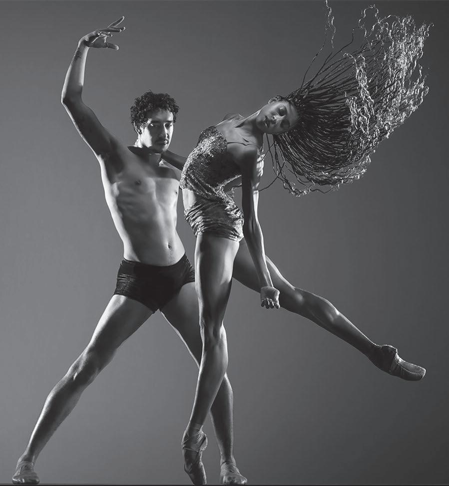 photo: David Bazemore; top inset: Kimberly Citro; bottom inset: Emilio Madrid Tiler Peck teaches a ballet master class for UCSB students