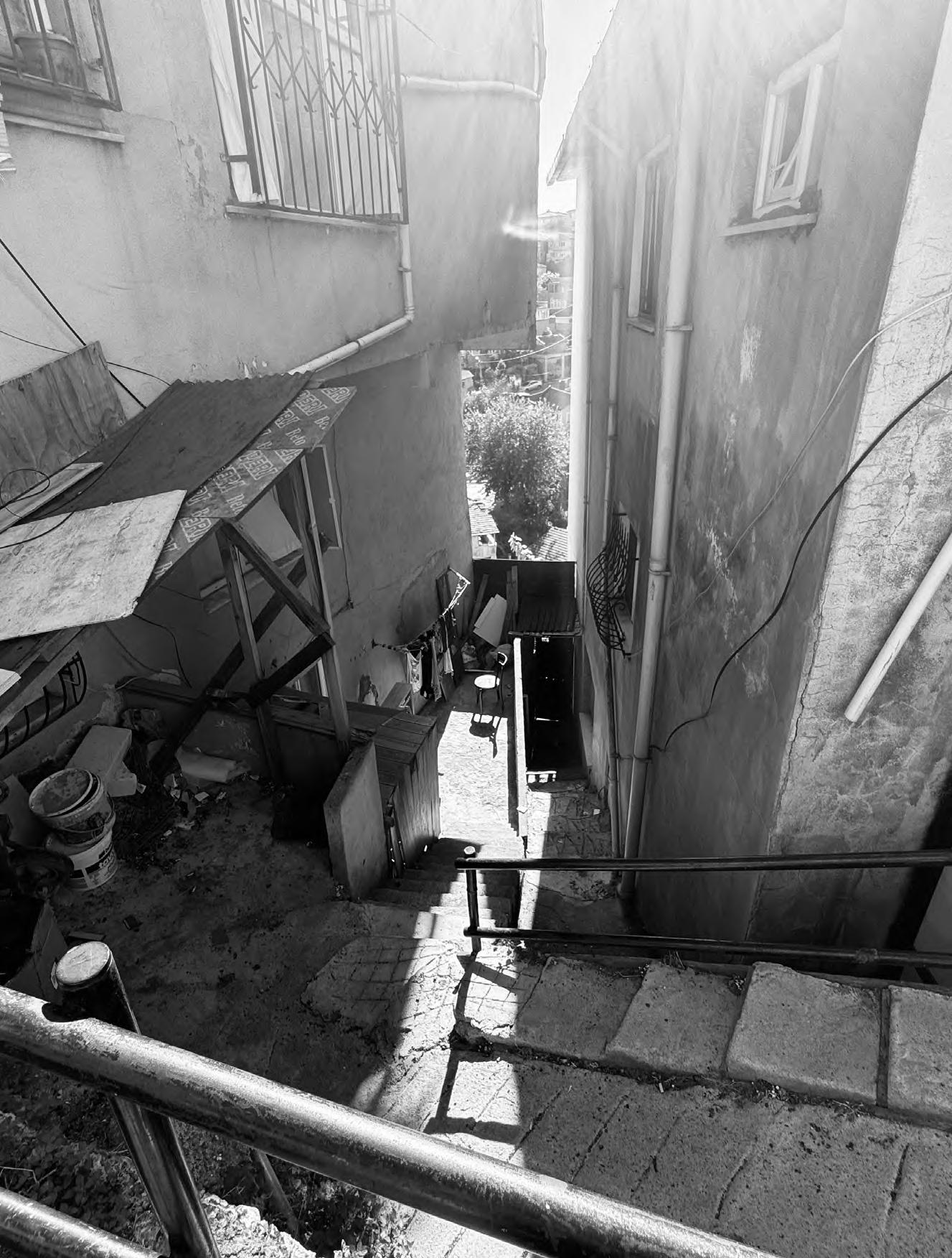 To achieve this, the thesis uses time-stamped Google Maps images to identify growth patterns between 2014 and 2024, alongside street photography in 2025 to capture social interactions. Planelevation combination drawing methods are employed to understand the spatial complexity of gecekondu interstitial spaces, where irregular houses, land divisions—or the lack thereof—and topography intersect.