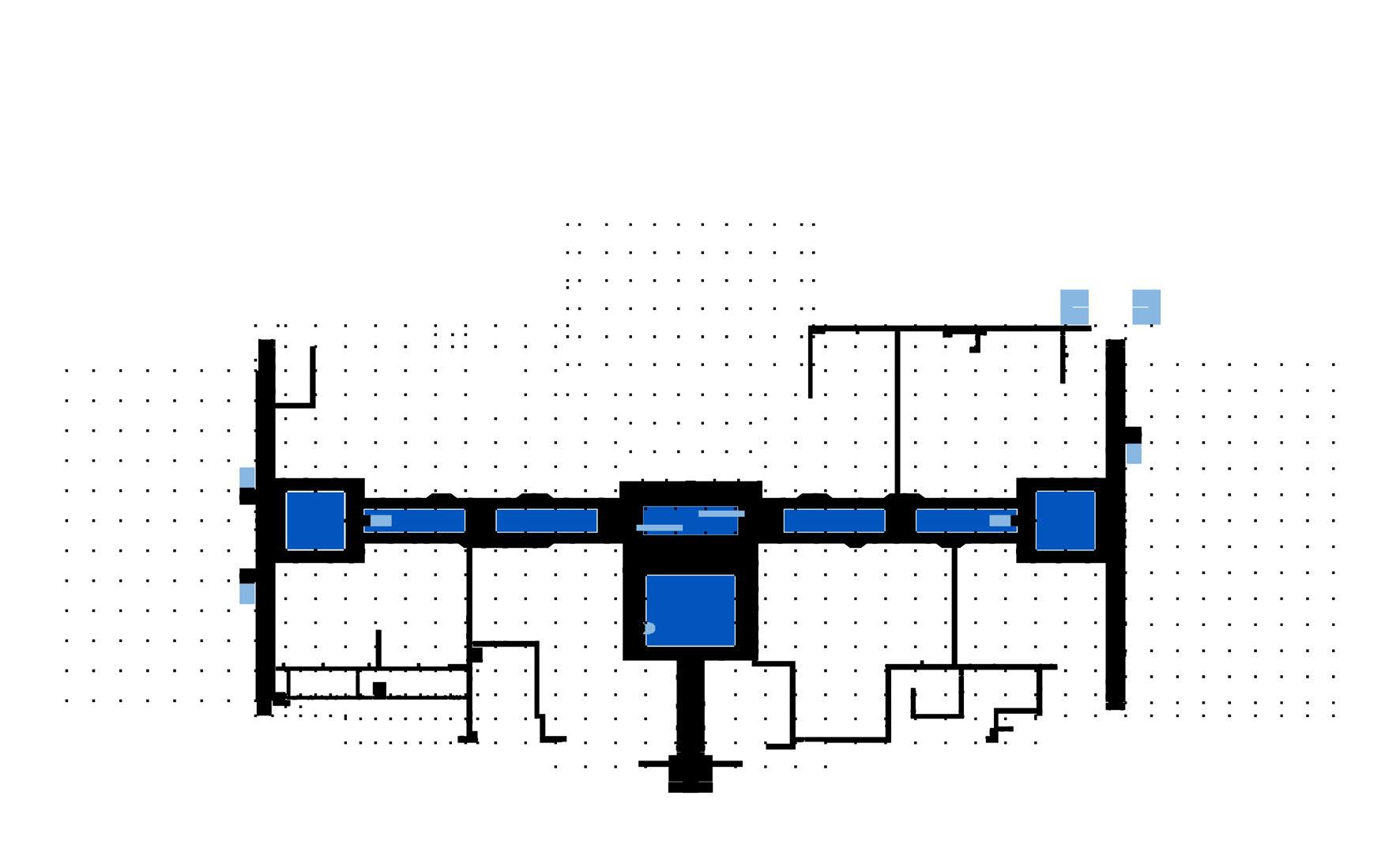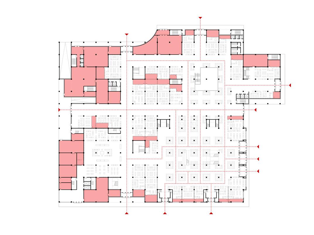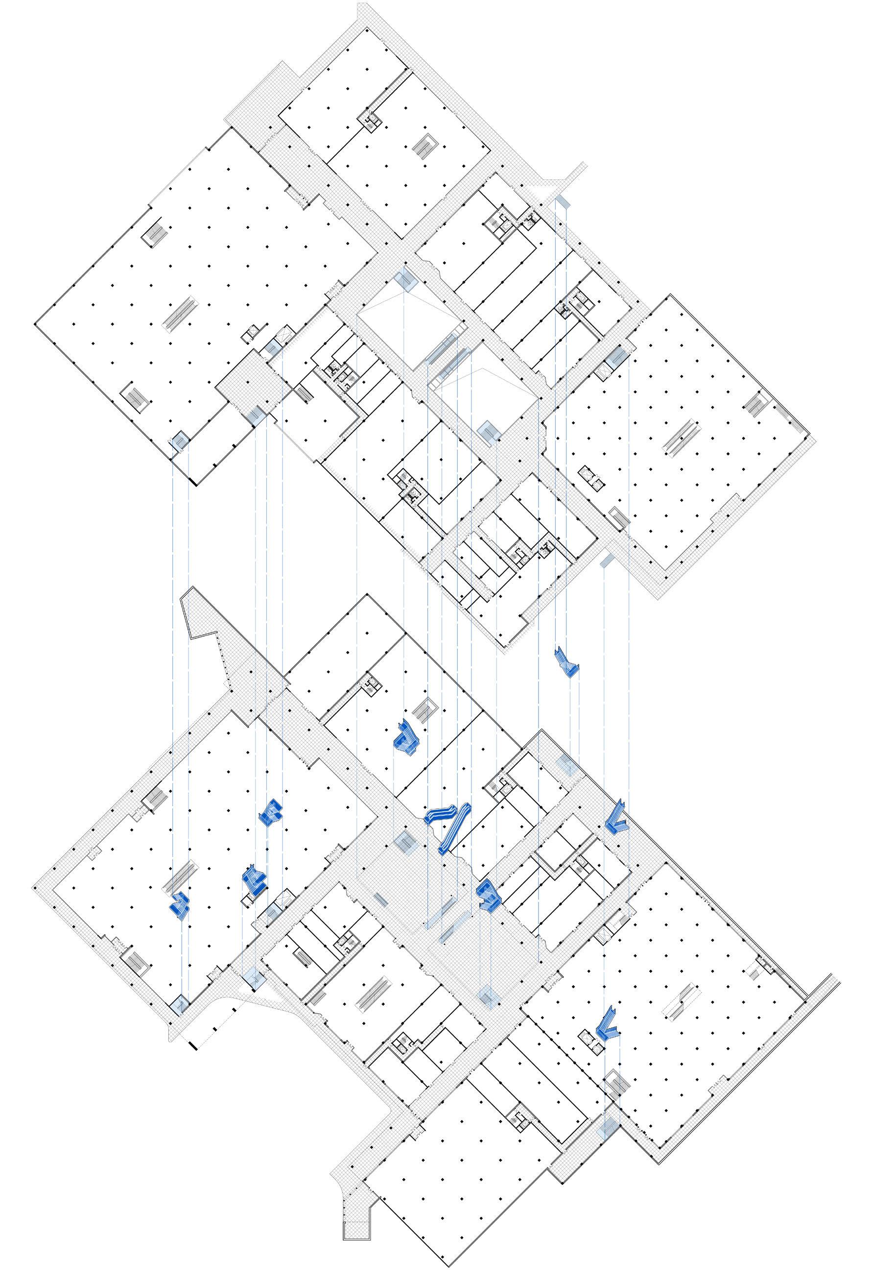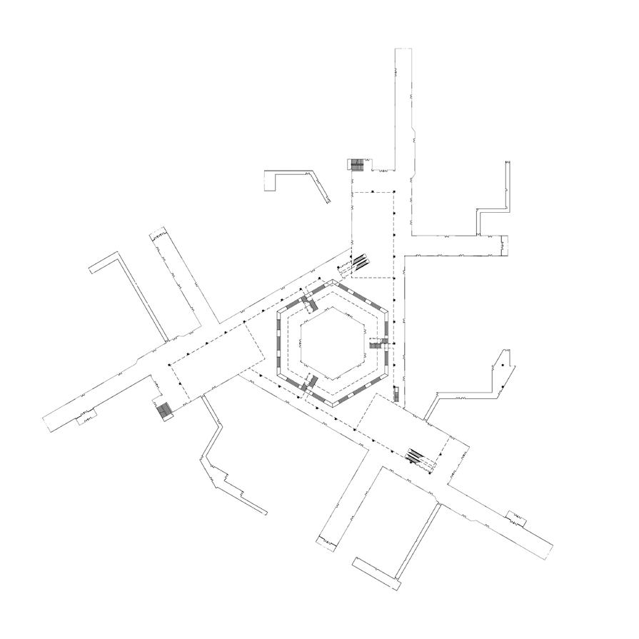 Fig 101. New cor ridor system changes circulation in three buildings. Drawn by author.