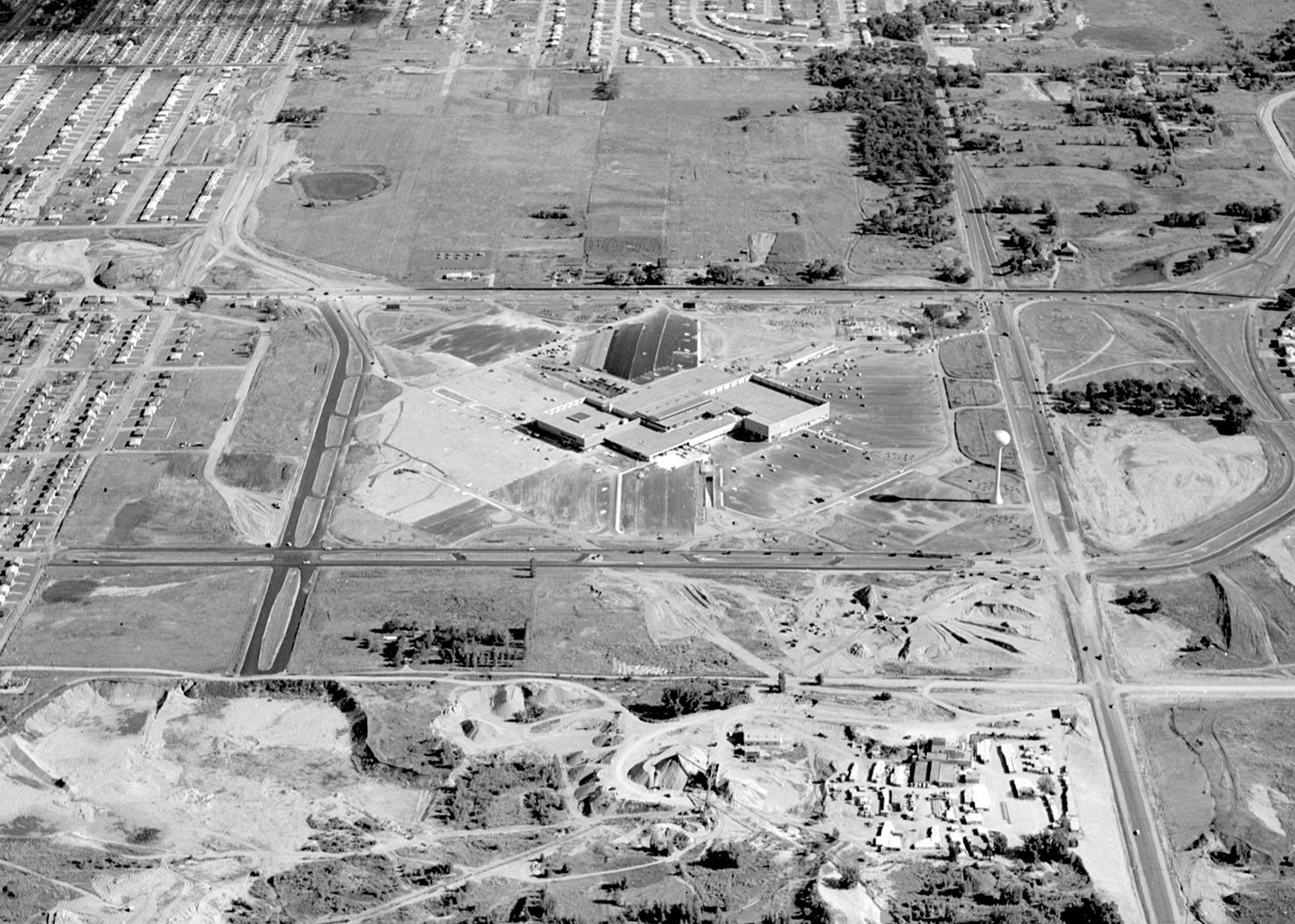 Fig 6.4. Monroeville Mall, Monroeville, Pennsylvania, bird’s-eye view photography, 1969. From Histories & Mysteries: The Age of Suburban Flight sparks new era of shopping Centres, malls.