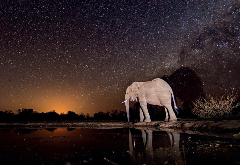 Marion Bader konnte im Hide der Mashatu Lodge in Südafrika diese Elefanten am Wasserloch aus nächster Nähe fotografieren.