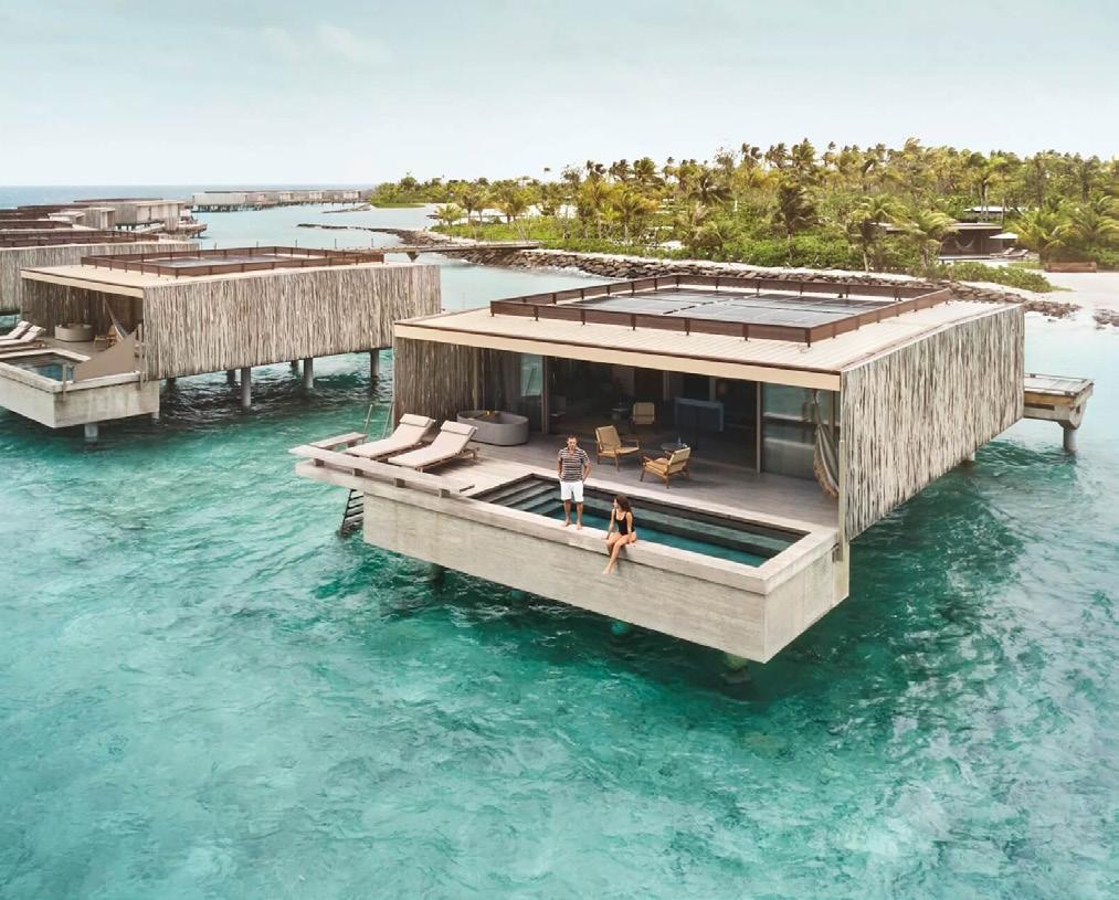 An emerald drop wrapped in soft white sands, surrounded by a vibrant coral reef, and hidden in the heart of a UNESCO biosphere reserve, Milaidhoo is an island paradise. Dine in Ba’theli — a docked, locallymade cargo boat in the lagoon, watch dolphins play in the turquoise ocean or simply relax on your private sundeck. Avid divers will rejoice at the marine life in nearby reefs and honeymooners will be entranced by the spectacular sunsets and incomparable ocean views.