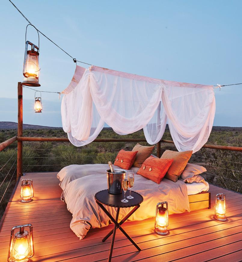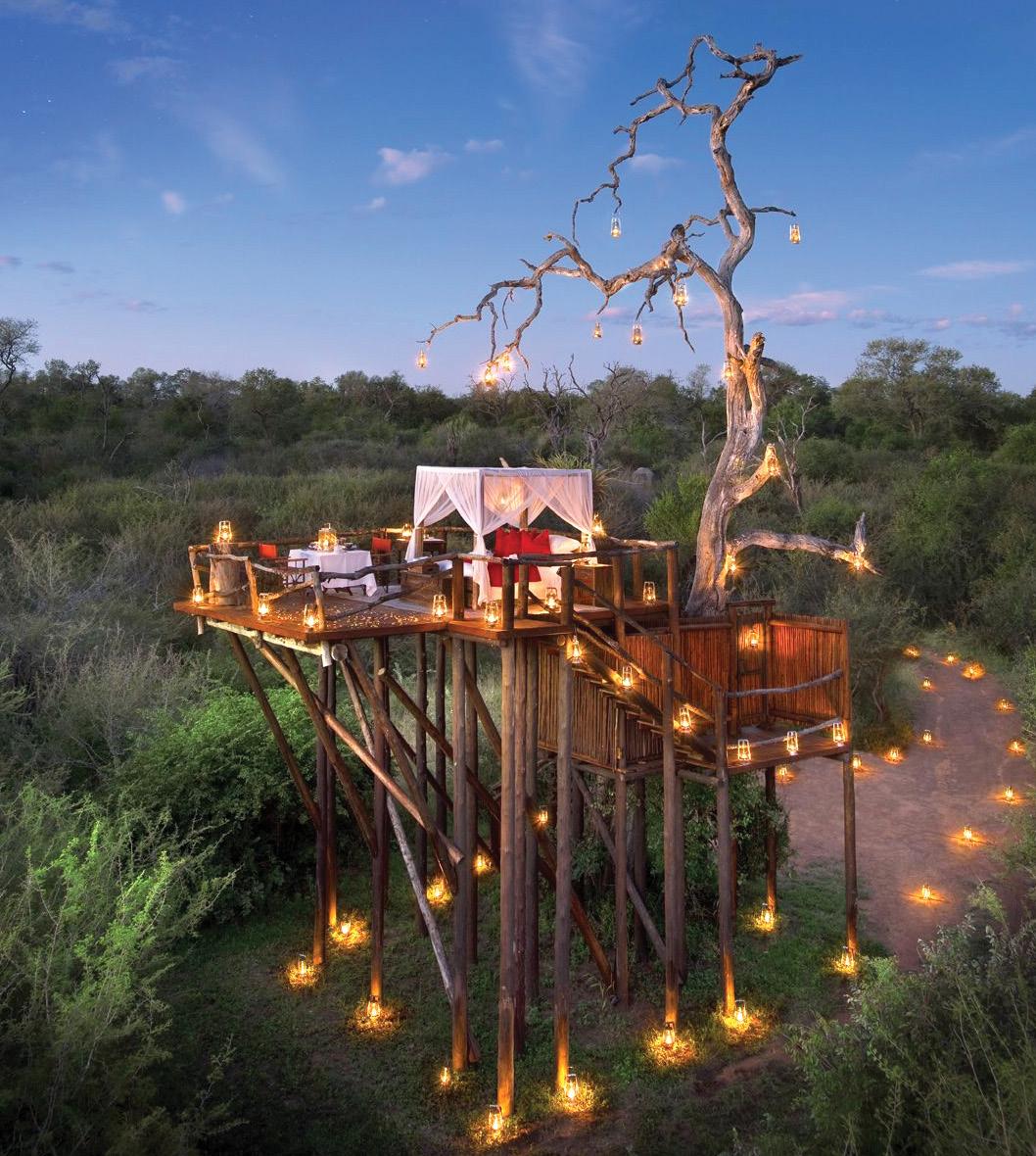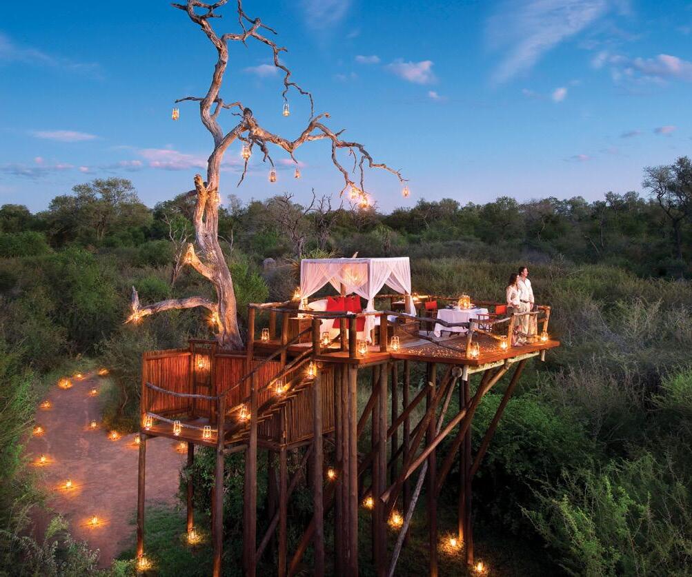 • The Treehouses at the Lion Sands Game Reserve at Kruger National Park are the ultimate African bush bedrooms: Think Out of Africa meets out of this world. Sleep in luxury beneath a billion stars, woken only by the sounds of distant lions roaring, leopards sawing, and hippos honking. Ideal as a wedding or anniversary treat for hopeless romantics, adventurers and wildlife enthusiasts, you will never forget a night spent in the Treehouses.