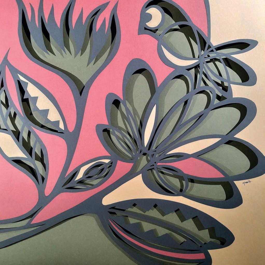 Genaro VI. 60 × 60 × 2 cm. Técnica: paper cut, em papel Colorplus 180 g/m², cortado manualmente. Outubro 2023