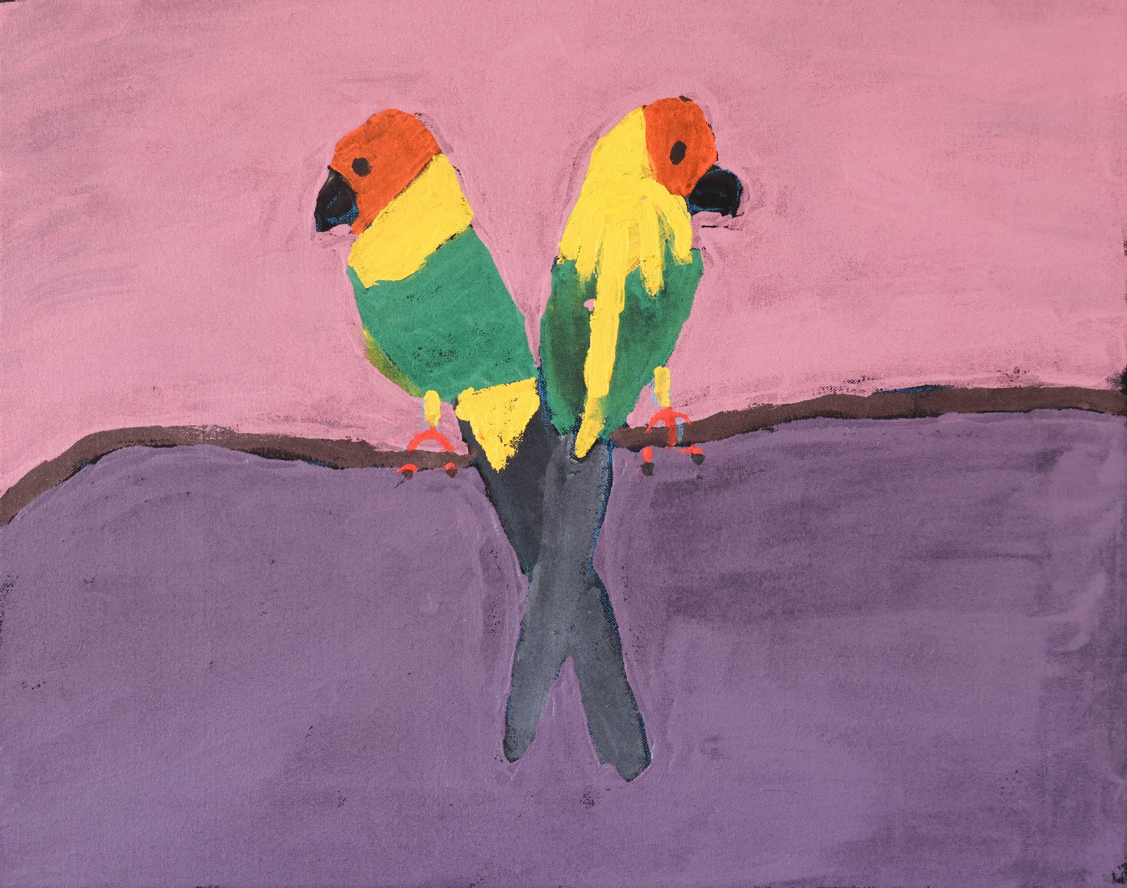 “Nyangulya Katie Nalgood has a strong affinity with birds, the diverse feathered creatures filling her personal history as well as cultural life. They are as much a part of her Country as she is, and their songs are the sound memories of her home. Nyangulya started out painting only the birds native to her country in Western Australia’s Pilbara region, and collaborated with family members to help her sketch out their forms. Her technical skill has since become more refined, and she now works independently. Her imagination has also expanded, and she looks to birds from across Australia finding inspiration in their different colours, forms, and personalities.”