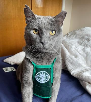 12-year-old Grady is a ball of love, and the pandemic cat has changed Rebecca Hobart’s life for the better. “I got him from Animal Humane in 2020, and he was only $7.50!” she says. He might’ve been cheap, but you can’t put a price on his stellar personality. “When I’m doing work on my bed, I like to sit criss-cross, and he’ll sit in my lap and brush his face against my cheek,” says the UNM grad student. When he’s not devouring his favorite squeeze up treats, Grady likes to lay on a red chair in the living room and work on his tan. The holidays are his favorite time of year, and it’s not hard to guess why: “He loves Thanksgiving turkey,” says Hobart. There’s no shortage of treats at the Hobart house, as Grady gets a bedtime snack from the nightstand before bed. “He’s so cute, he’s just the best,” says Hobart.