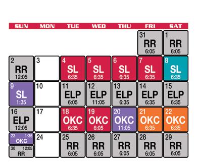 WWW.ABQTHEMAG.COM | APRIL 2023 APRIL PROMOTIONS HOME FIREWORKS MARIACHIS DE NUEVO MÉXICO DAY GAME AWAY ALL TIMES MOUNTAIN. GATES OPEN 65 MINUTES PRIOR TO GAME TIME UNLESS OTHERWISE NOTED. ARRIVE EARLY, SIZES AND QUANTITIES OF PROMOTIONAL ITEMS ARE LIMITED. ONE ITEM PER TICKET/ PER PERSON. MUST BE IN ATTENDANCE TO RECEIVE ITEM. NO RE-ENTRY. FIREWORKS WEATHER PERMITTING. SCHEDULE AND PROMOTIONS SUBJECT TO CHANGE. THURSDAY, APRIL 20 FRIDAY, APRIL 7 GATES OPEN: 5:30 PM - GAME TIME: 6:35 PM FRIDAY, APRIL 21 SATURDAY, APRIL 22 GATES OPEN: 5:00 PM - GAME TIME: 6:35 PM GATES OPEN: 5:00 PM - GAME TIME: 6:35 PM COURTESY OF COURTESY OF PRESENTED BY COURTESY OF FIREWORKS* FIREWORKS* *WEATHER PERMITTING *WEATHER PERMITTING LITTLE LEAGUE NIGHT LITTLE LEAGUE NIGHT Fleece Blankets (first 2,000 fans) TUESDAY, APRIL 4 WEDNESDAY, APRIL 19 GATES OPEN: 5:30 PM - GAME TIME: 6:35 PM JACKIE ROBINSON CELEBRATION GATES OPEN: 12:30 PM - GAME TIME: 1:35 PM GATES OPEN: 12:30 PM - GAME TIME: 1:35 PM Magnet Schedules (first 3,000 fans) SUNDAY, APRIL 9 PRE-GAME EASTER CANDY HUNT (ON THE FIELD 12:30-1:00 PM) TUESDAY, APRIL 18 GATES OPEN: 5:30 PM - GAME TIME: 6:35 PM GATES OPEN: 5:00 PM - GAME TIME: 6:05 PM GATES OPEN: 10:00 AM - GAME TIME: 11:05 AM SCHOOL DAY MATINEE 50¢ HOT DOG NIGHT BARK IN THE PARK 22oz CUPS SUNDAY, APRIL 23 Presented by Simparica TRIOⓇ & Dasuquin ESM Have lunch at the Lab! SATURDAY, APRIL 8 GATES OPEN: 5:30 PM GAME TIME: 6:35 PM LONG-SLEEVE T-SHIRTS (first 2,000 fans 21 & older) PRESENTED BY (first 2,000 fans) Presented by COURTESY OF