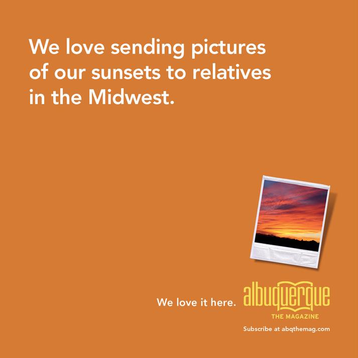 POSTMASTER: Send address changes to Albuquerque The Magazine, 1550 Mercantile Ave. NE, Top Floor, Albuquerque, NM 87107.