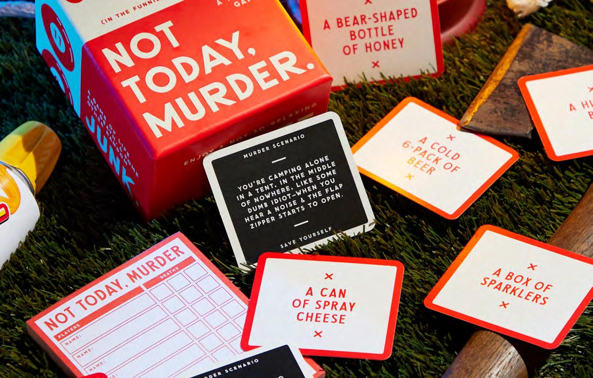 In this hilarious party game, players try to devise the best plan to escape from a series of entertainingly ‘murder-y’ situations–but even better, there’s a twist. See, you only have 3 randomly drawn objects at your disposal to use–anything from a rubber duck to a can of spray cheese.