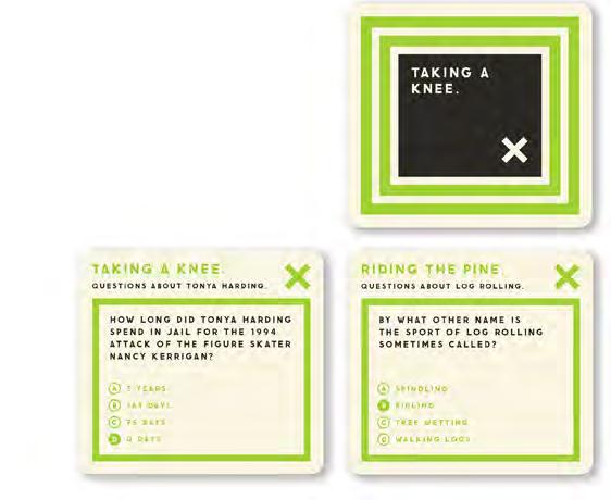 Trivia should be fun–not feel like a homework assignment. That’s why we’ve filled ours with as many weird and obscure sports facts as we could find…and even better, you’ll choose questions from a bunch of misleading categories. For example: “Riding the Pine” –which are questions about log rolling.