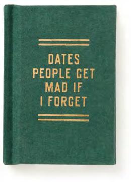 And by tiny…we mean really tiny. This 2.75” by 3.75” journal features 112 gilded-edge pages—perfect for keeping track of all those momentous dates that mean so much to you. Mainly because you’d be murdered if you forgot them—but still. You will never forget a special occasion again —but if you do, it’s not our fault.●
