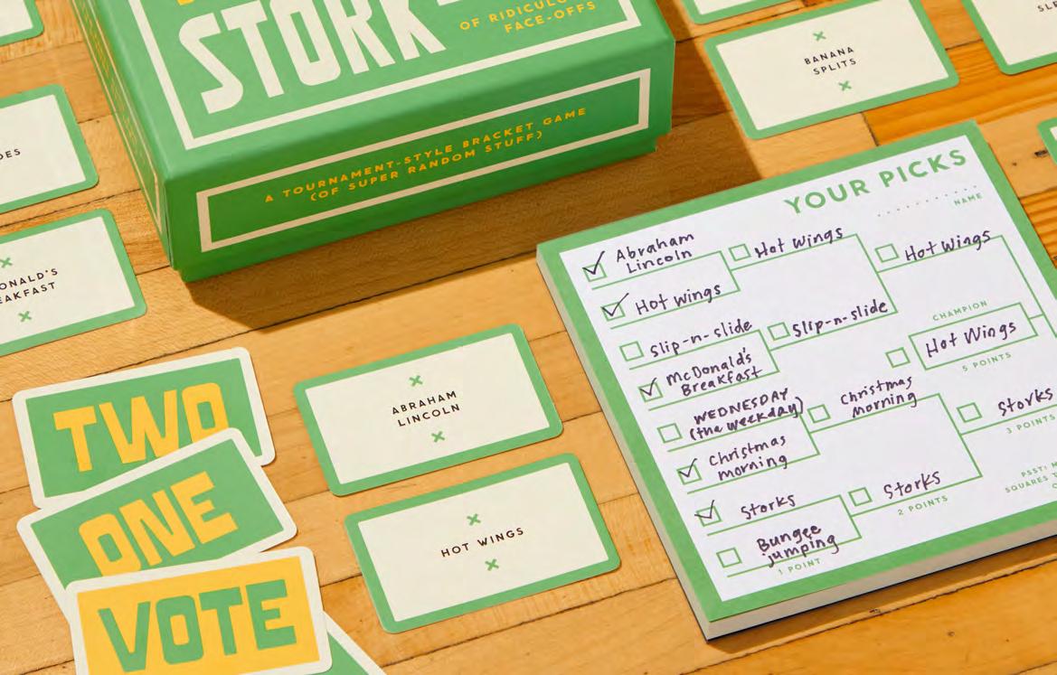 This party game is a spin on those classic NCAA brackets we all fill out in March–without all of that pesky ‘basketball.’ Instead, we’re pitting off everything from ‘Pizza Rolls’ to the movie ‘The Godfather.’