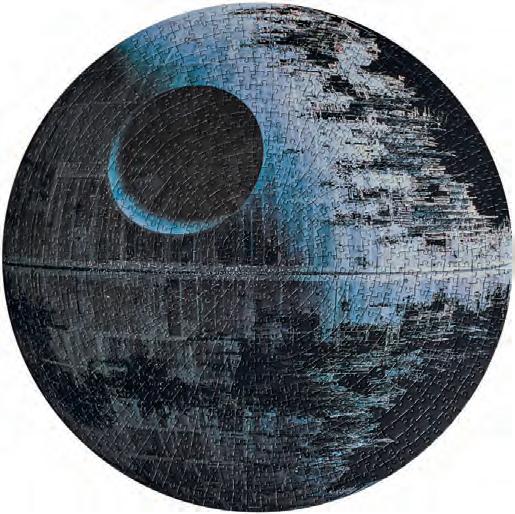 Double-sided 1000-piece jigsaw puzzle shaped to resemble the iconic Death Star from Star Wars. On one side is a full-colour image of the Death Star ’s exterior, on the other side is the schematic blueprint of the space station with key features labelled. Includes poster guide. Packaged in paper bag inside a card tube sealed with paper tamper seals, this product is plastic-free. Ages 8+.