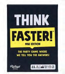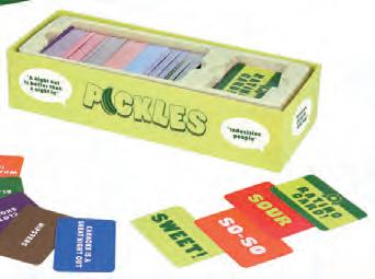 over three rounds of this fast-paced quizbased party game! With each round the answers stay the same but the clues get harder, until you’re only given one word. So you must pay attention! Includes 240 game cards, score pad, sand timer, pencil, and instructions.