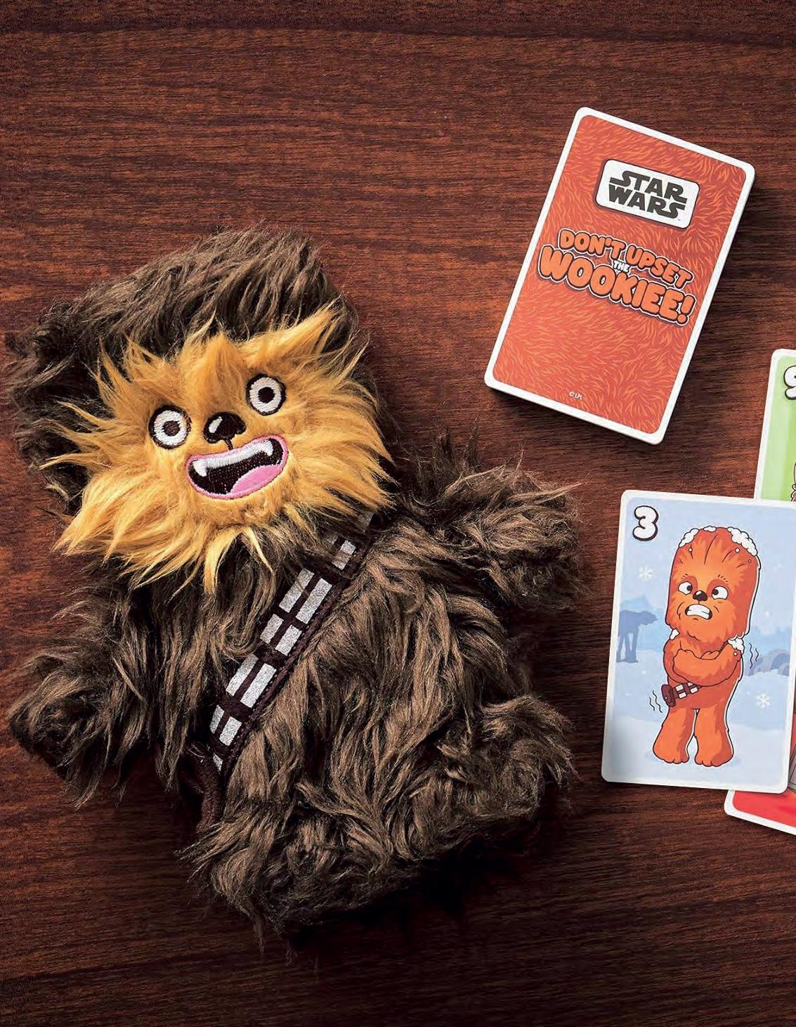 Play a card with a Chewbacca who is angrier than the last until he eventually loses it! Gather a complete set of Chewies, clear your hand, or be the last Wookiee standing to win. Includes 54 game cards and EFIGS instructions, packaged in Wookiee plush case.