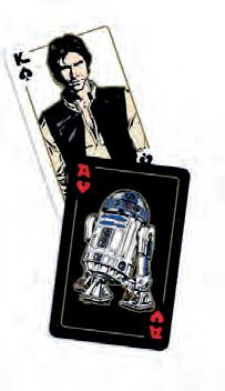 The classic game of Solitaire, carbon frozen. Graduate from Padawan to Jedi Master with a roguish twist that's hard to beat. Includes 54 playing cards and EFIGS instructions. Han Solo in carbonite embossed tin. FSC paper and soy inks.