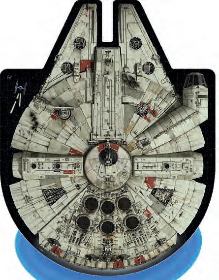 Double-sided 1000-piece jigsaw puzzle shaped to resemble the iconic Millennium Falcon from Star Wars. On one side is a full-colour image of the Millennium Falcon, on the other side is a schematic of the starship with key elements labelled. Includes poster guide. Packaged in paper bag inside a card tube sealed with paper tamper seal stickers, this product is plastic-free. Ages 8+.
