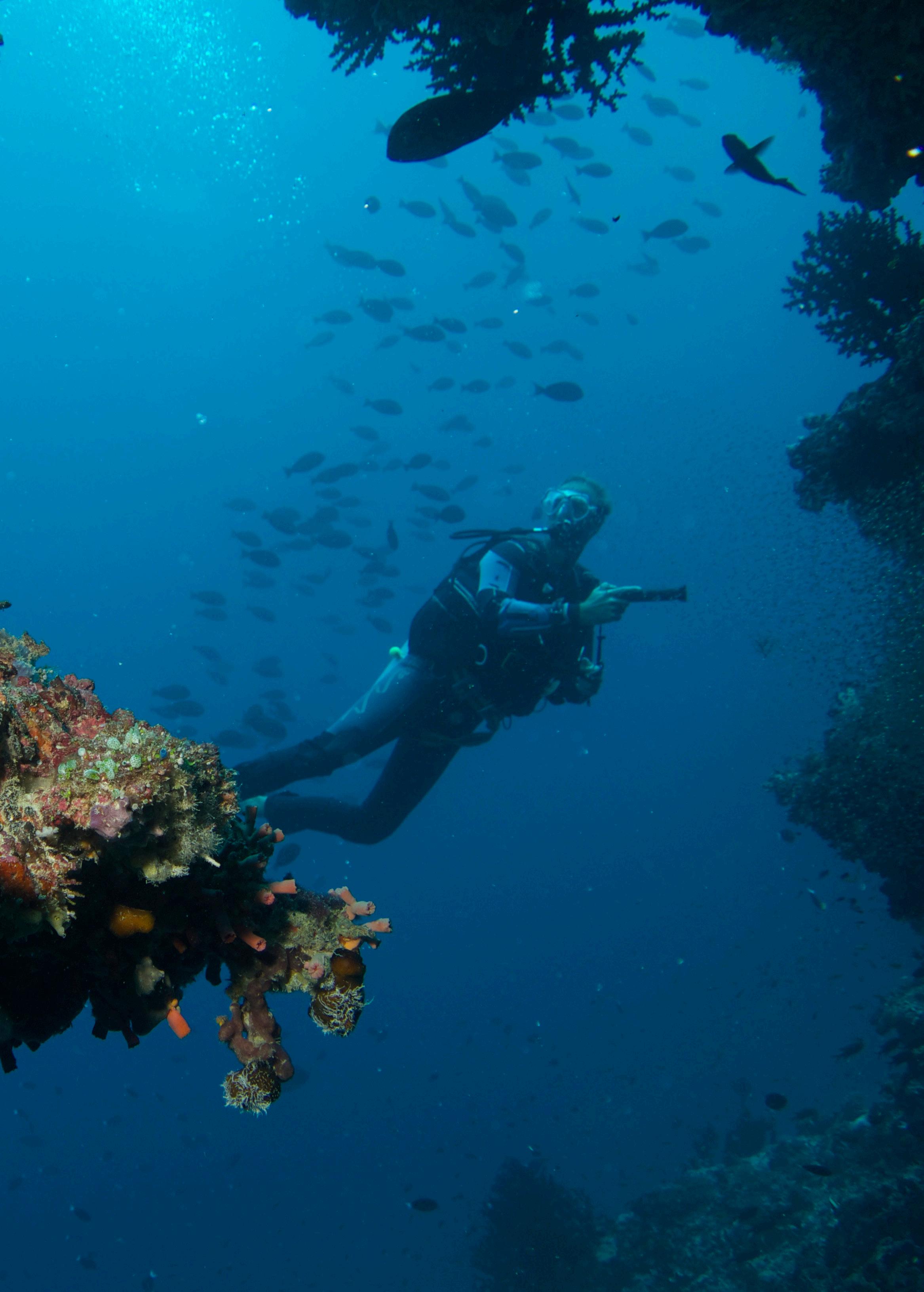 When you're at Baros, you have a world of incredible marine life within a short swim of your villa. A shoal of barracuda glides gracefully on a tropical current. A turtle rises languorously from the depths. Wade into the lagoon and discover a world of bewitching beauty, with colourful fish and turtles drifting through the house reef, just 20 metres from shore. Or choose from the dozens of world-class dive sites less than an hour away from Baros – a boon for divers and an incredible bounty this close to Malé.