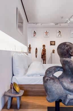 Theater and visual artist Robert Wilson, best known for his 1976 opera Einstein on the Beach, is revered in Europe. But he’s not quite as well known in America. But when you take a tour of his treehouse-like summer apartment inside the Watermill Center, you’ll begin to understand his artistic mind. A simple, low bed appears to float amidst hundreds and hundreds of objects, all collected by Wilson and arranged into a personal tableau. There are limestone buddhas and Indonesian totems: masks, metal breastplates, drums, spears, costume sketches, and textiles. These fascinating objects are juxtaposed inside this sun-filled retreat, all touchstones for the creative process.