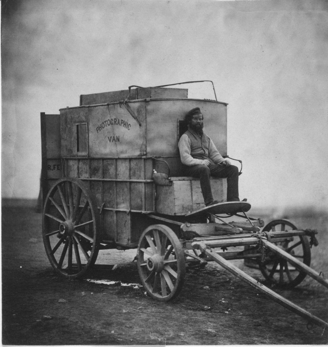 The most significant paradigm in the art of photography is the shift from analog to digital. Young generations today have lost the fascinating process of the film, water, chemicals, and paper. They have lost the magic that appears in front of your eyes when you put the exposed paper into the developer. Within ten seconds, the picture slowly begins to appear, and if you have made the right exposure, it is fully developed within two minutes. How the film is exposed is still a mystery; the physical and chemical reaction has still not been revealed. Compared with sketches and paintings, pictures were created untouched by any hands and “drawn with light.” The handicraft of photography started with imitating the theories of old-school paintings. With its short history of almost two hundred years, it has had a remarkable development. The first news photograph, which was made in France 1847 and published in the Journées illustrées de la révolution de 1848, is considered the first image used to illustrate a news story and the first example of photojournalism. A few years later in 1855, Roger Fenton, along with his assistants and equipment, was engaged in the Crimea War as an official campaign photographer paid for by the British government. This was the first historical attempt to portray a war campaign. Due to the limitations of the photographic techniques of the period, it was hard to capture the devastation of the war. But still, the realism of Fenton’s photos surpassed text descriptions, drawings or paintings as journalistic evidence. The cumbersome equipment Fenton carried with him in his van, his mobile darkroom, were 700 glass plates, five large format cameras and cases of photographic equipment and supplies.