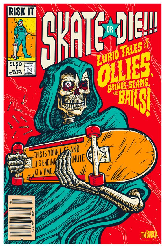Thanks to skateboarding, Tim is adept at seeing things, like art, in a new and different way. This mixed with inspiration from the toys, monsters and joyful memories of his childhood have made him the artist he is today. Tim continues to ride his skateboard and breathes art and creativity