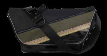 包款採用四種異材質回收組成,包含回收自行車內胎、rPET(再 生聚酯)及寶特瓶回收紗、廢紗線,隨機切割形成的不同內胎紋 理搭配隨機顏色組成的紗線背帶,使每個包款外型皆具獨特性, 紋路為世上獨有絕不重複。物料特性防潑水(water repellent)、 耐磨、抗撕裂十分適合戶外使用,滿足消費者在戶外活動中需要 攜帶物品的需求