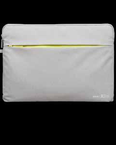 Acer Vero 筆電保護套以 4.5 個 600 毫升的消費後 100% 回收寶特瓶紗 (PCR) 所製成,以永續再生為初 衷,同時也能保護環境。緩衝特性布料能夠保護筆 電,適合大部分 15.6 吋筆記型電腦,設有正面口袋 增加您的儲存空間,將永續融入生活,適合對於保 護地球想要盡一份心力的你。