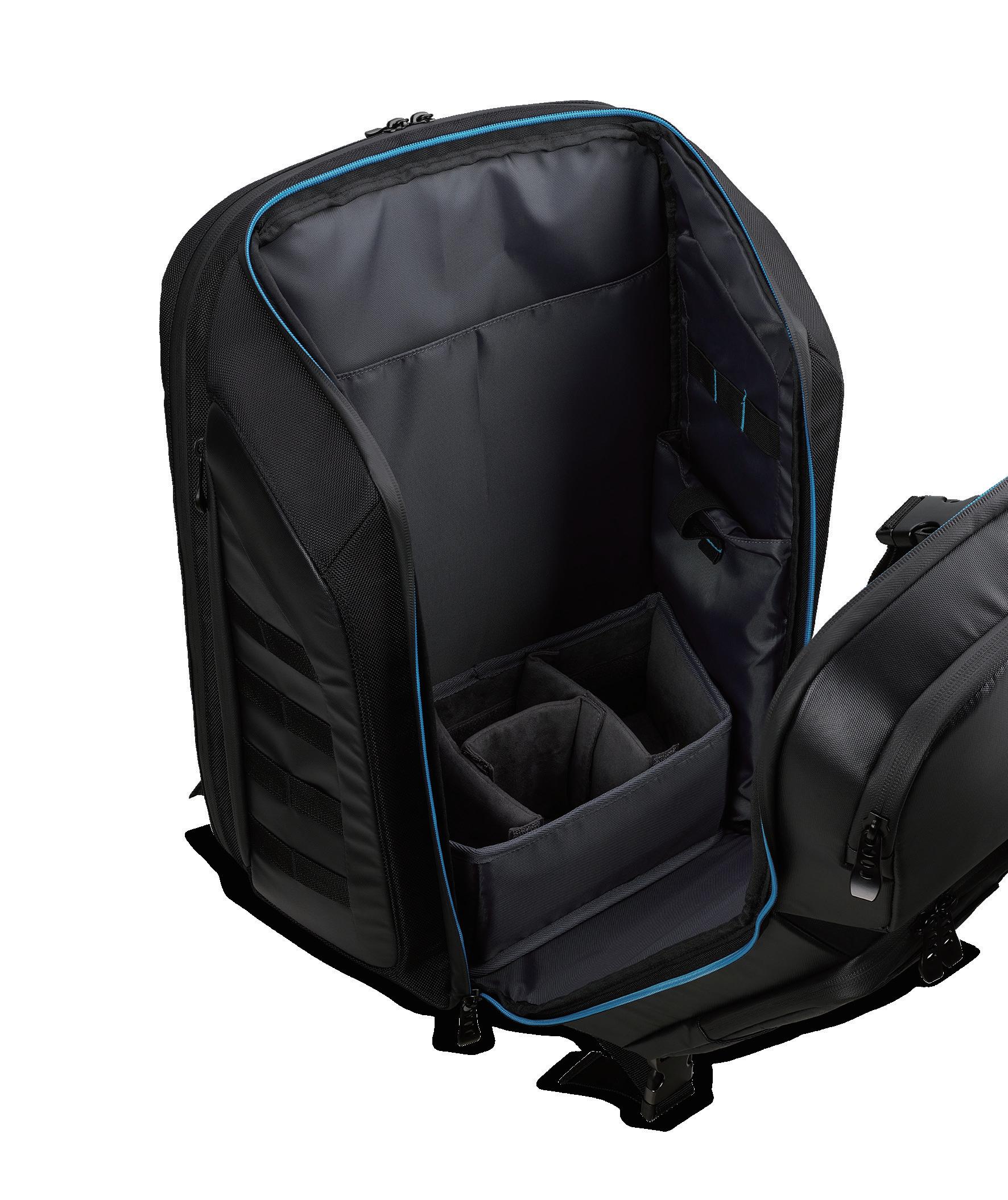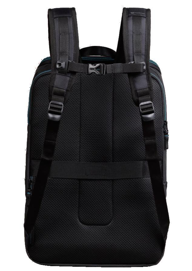 For the first time, abrasion-resistant and tearresistant CORDURA® fabric is used to create the backpack. Coupled with the water-repellent zippers, it not only enhances the durability of the backpack but also reduces the overall weight.