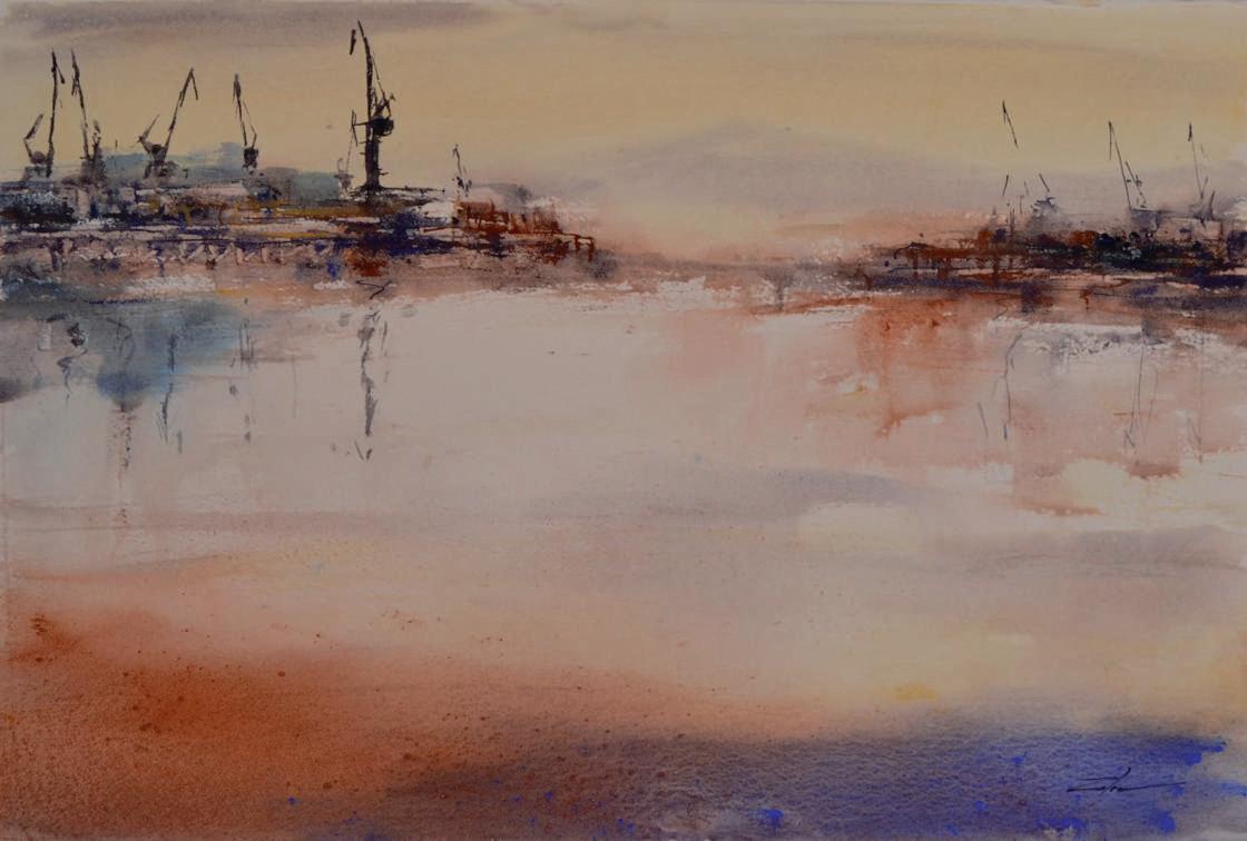 Amanecer en la ría Juan Antonio MENCHACA 50x70 cm.