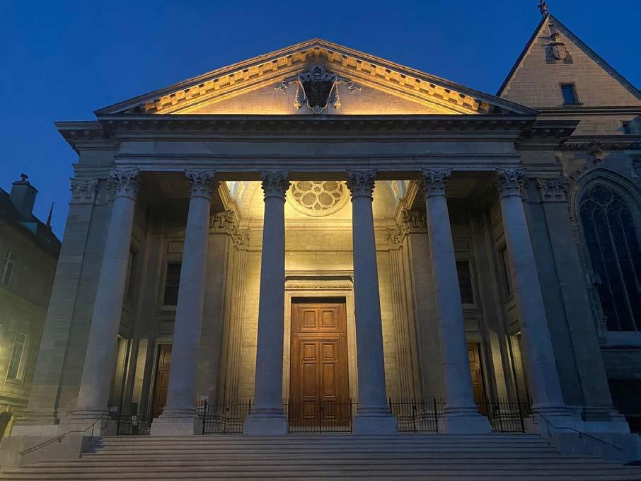 The climb grew steeper at the Passage des Degrés-de-Poules, 67 steps that tested our legs and brought us, a little breathless, to the grand St. Pierre Cathedral. Its towers have watched over the city since the Middle Ages, and in 1535 it became the beating heart of Calvinism.