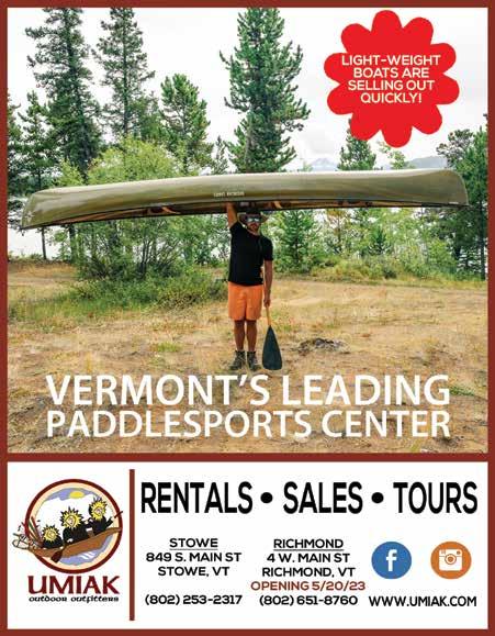 4 VTSPORTS.COM | MAY 2023 gearx.com | 37 Church St, Burlington, VT | 888.547.4327 | @outdoorgearexchange NEW, USED AND DISCOUNTED GEAR AT THE BEST PRICES POSSIBLE FRESH CANOES, KAYAKS AND STAND UP PADDLE BOARDS TONS OF BIKES IN STOCK AND ON SALE NEW OUTDOOR CLOTHING AND FOOTWEAR ARRIVING DAILY BIG DISCOUNTS ON CAMPING EQUIPMENT Spring new arrivals have landed! Gear up for summer. Adventure your way.