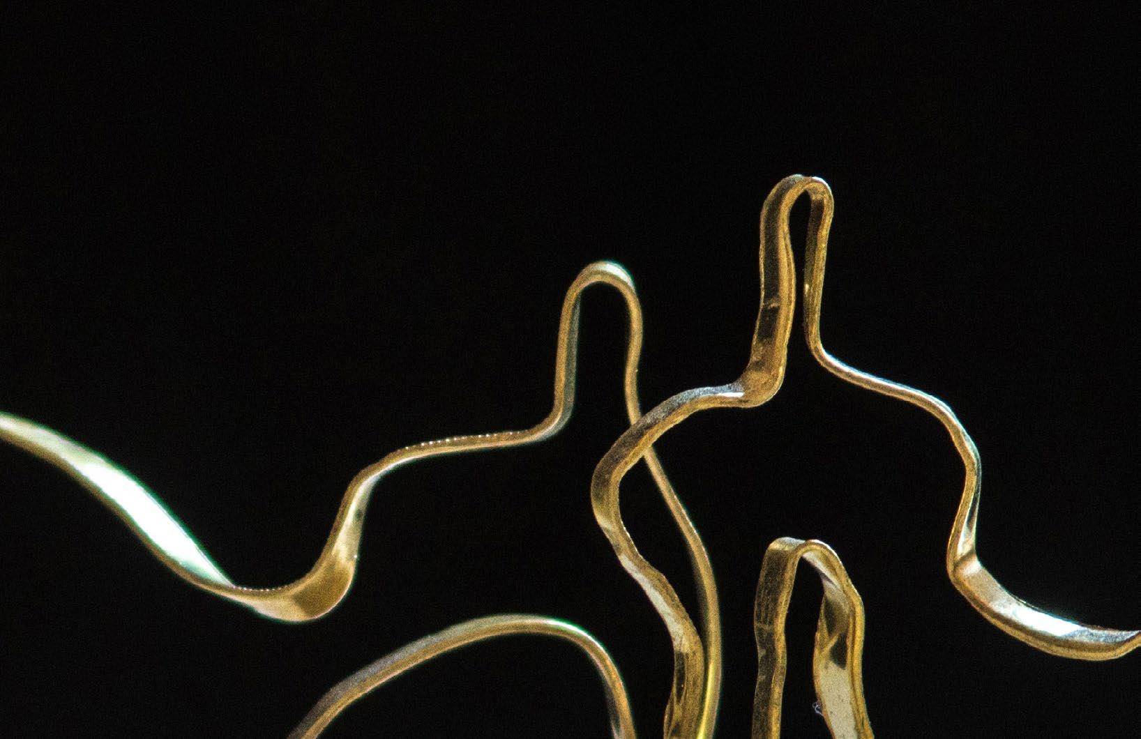 Wood, wire, newspaper, tape, glue, matte medium, uv matte varnish, wood stick