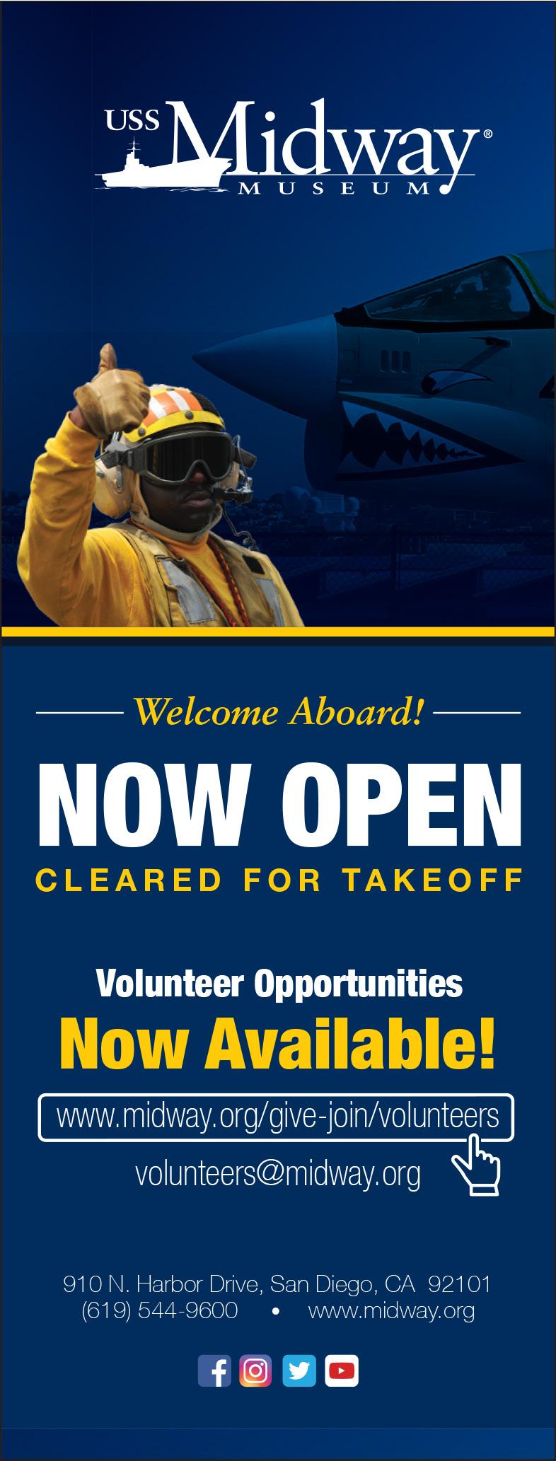For those interested in becoming a USS Midway Museum volunteer, more information along with the volunteer application can be found at: www.midway.org/give-join/volunteers.