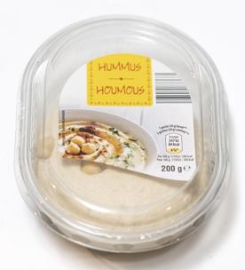 37% kikkererwten, raapolie, water, sesampasta, zout, knoflook, citroenzuur, peper, conserveermiddelen
