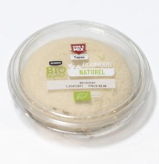 Ingrediënten 46,4% kikkererwten, water, raapzaadolie, 13,8% sesampasta, azijn, zout, knoflookpoeder, voedingszuren, specerijen (alle van biologische oorsprong)