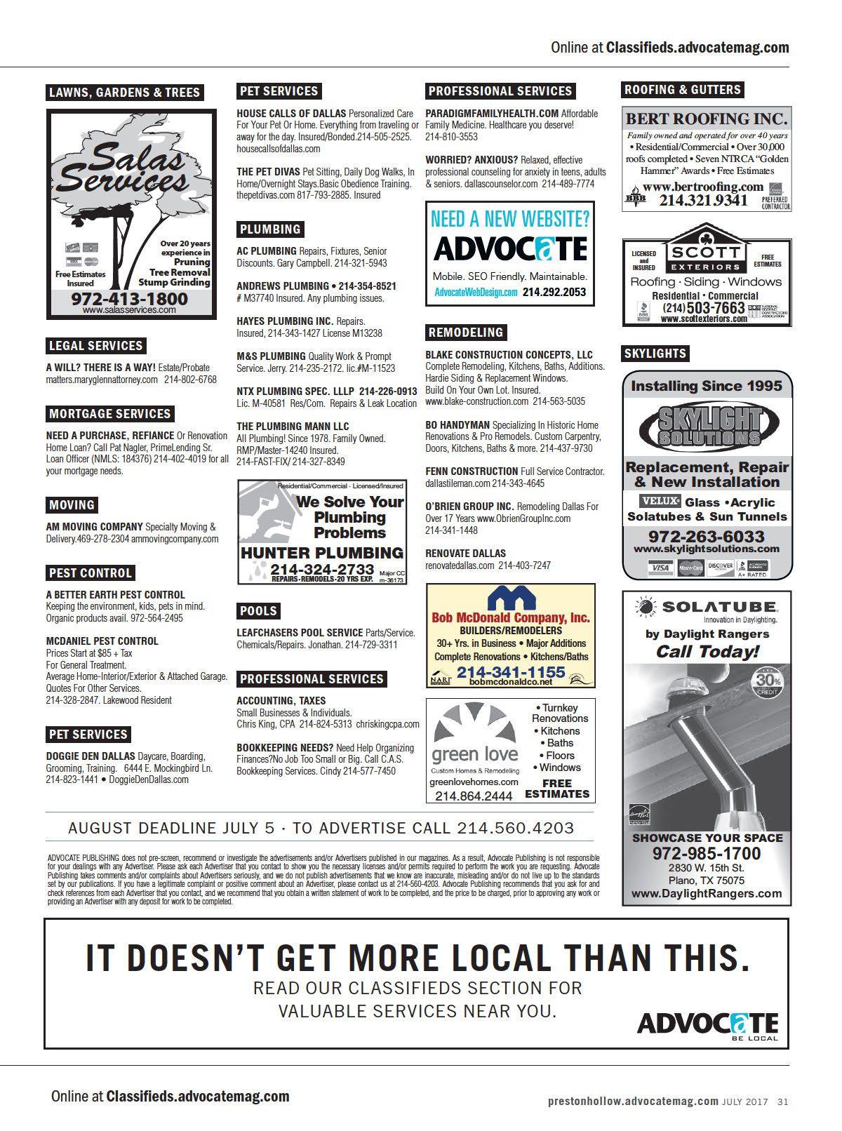 Advocate. The publisher reserves the right to accept or reject any editorial or advertising material. Opinions set forth in the Advocate are those of the writers and do not necessarily reflect the publisher’s viewpoint. More than 200,000 people read Advocate publications each month. Advertising rates and guidelines are available upon request. Advocate publications are available free of charge throughout our neighborhoods, one copy per reader. Advocate was founded in 1991 by Jeff Siegel, Tom Zielinski and Rick Wamre.
