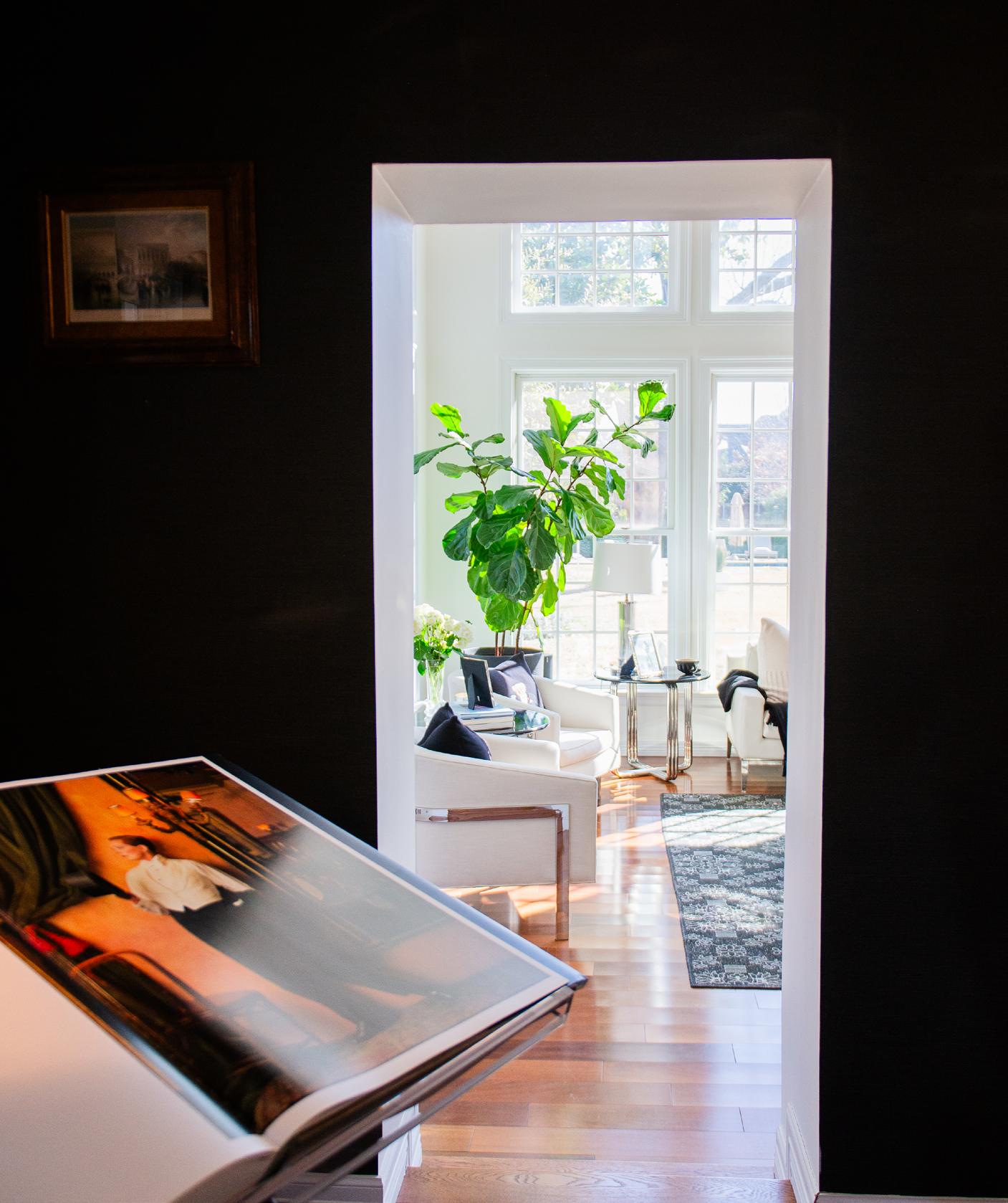 A black and white color scheme is the overarching design motif in this 1940s Georgian Revival home.