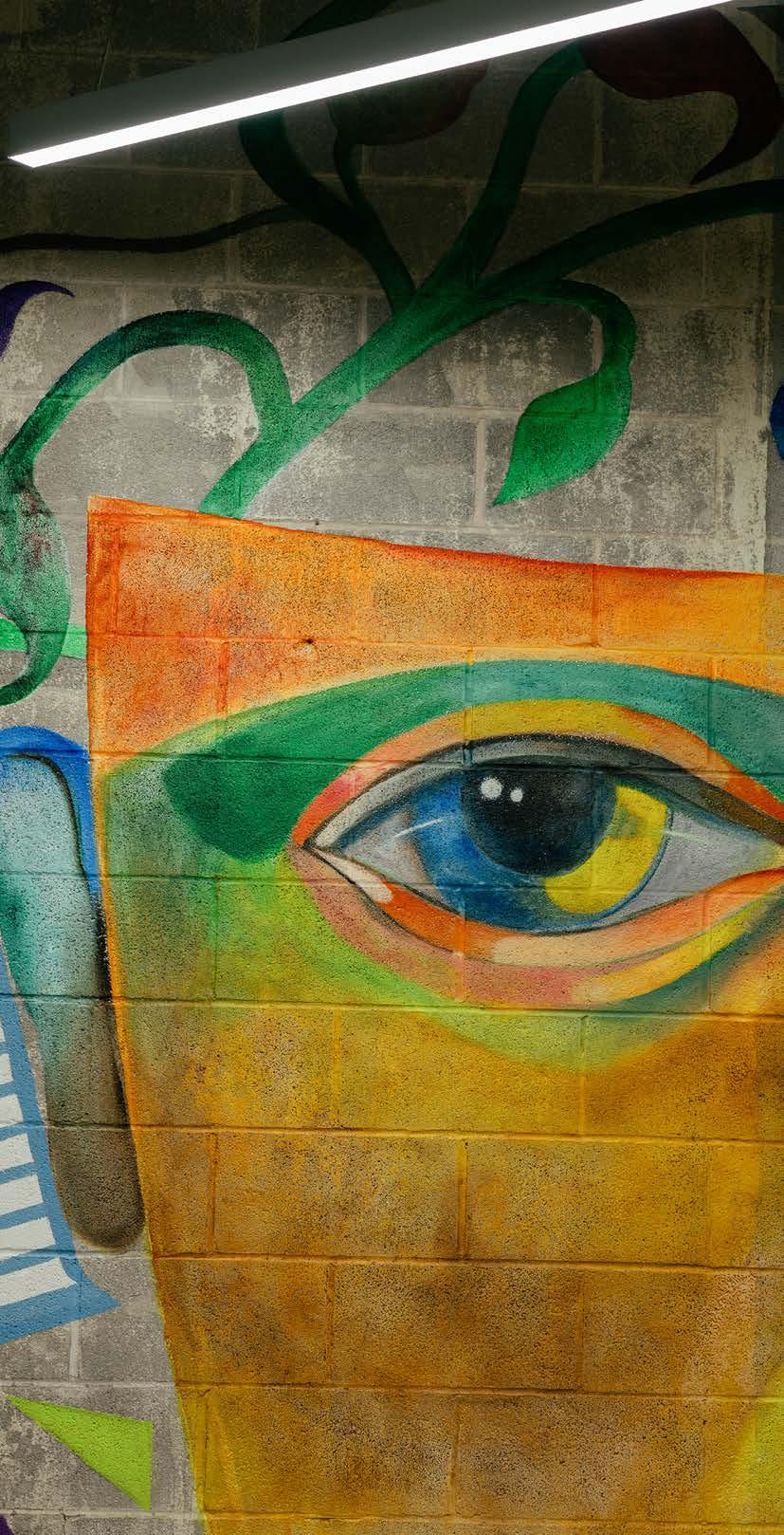 Located on the side of the Whiskers and Soda building, on Garland Road. The mural was made by J. Michael Stovall & Kealy Rocca in the summer of 2023. Photography by Austin Gibbs.