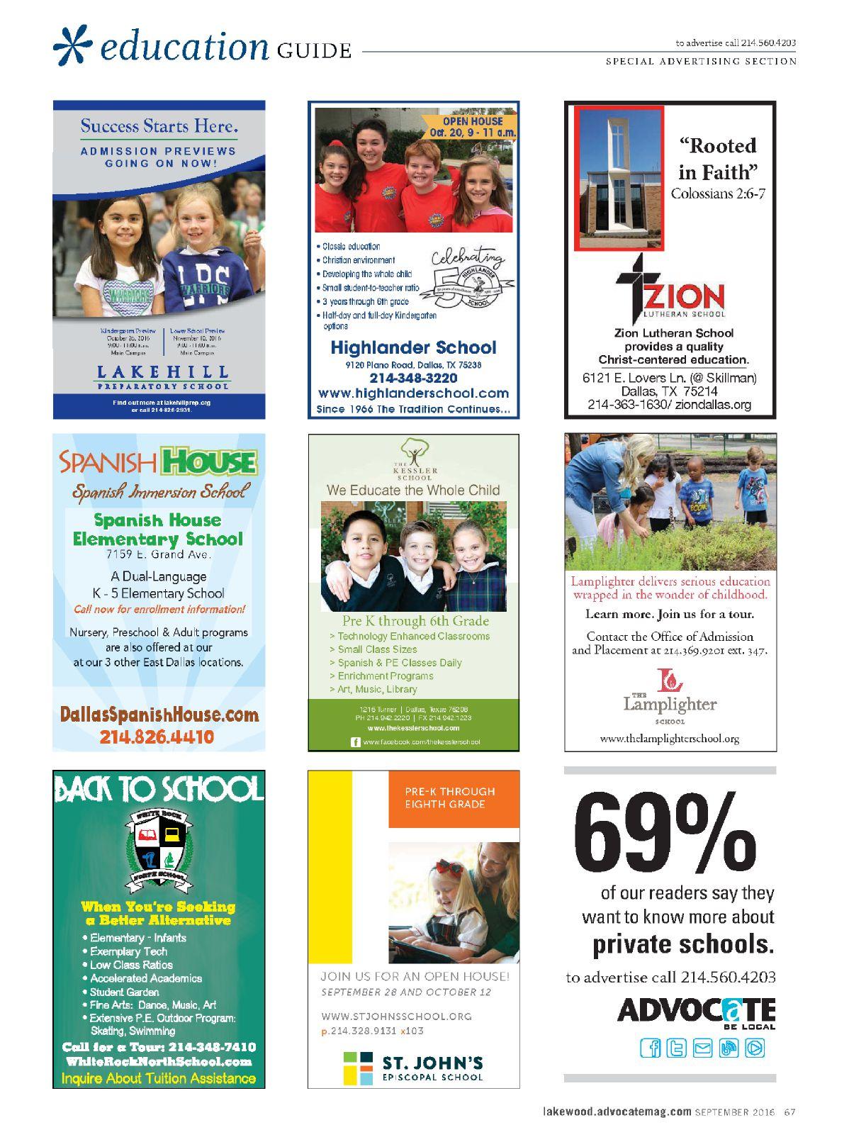 9120 Plano Rd. Dallas / 214.348.3220 / www.highlanderschool.com Founded in 1966, Highlander offers an enriched curriculum in a positive, Christian-based environment. By limiting class size, teachers are able to build a strong educational foundation to ensure confidence in academics, athletics, and the creative and performing arts. Highlander offers a “classic” education which cannot be equaled. Monthly tours offered; call for a reservation.
