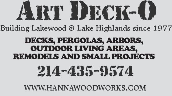 TRUECRIME Got a crime to report or cop question? E-mail crime@advocatemag.com KNOW MORE THAN THE NEWS >>blog 2 MEN KNOCKED A WOMAN TO THE GROUND AND STOLE HER PURSE IN THE PARKING LOT OF A MOCKINGBIRD LANE MEDICAL CLINIC 76 AGE OF THE VICTIM 3 WOMEN WERE VIOLENTLY ATTACKED FOR THEIR PURSES IN THE SURROUNDING AREA IN THE PAST MONTH SOURCE: DALLAS POLICE DEPARTMENT, DEC. 9 We'll work Wonders on your Blunders 3930 Main Street Between Haskell & Washington 6 Blocks South of Baylor Hospital (214) 821-3856 7700 Northaven, Dallas TX 75230 214-363-5316 Events & more at www.nhg.com UPDATE YOUR HOME. ENHANCE YOUR LIFESTYLE. Serving DFW for 25 years Kitchens, Baths, and Living Spaces Featured on HGTV Family Owned & Operated ronhouston.com ^ 214.729.1472 Specializing in Custom, Luxury Renovations Online Pricing | 214.507.1231