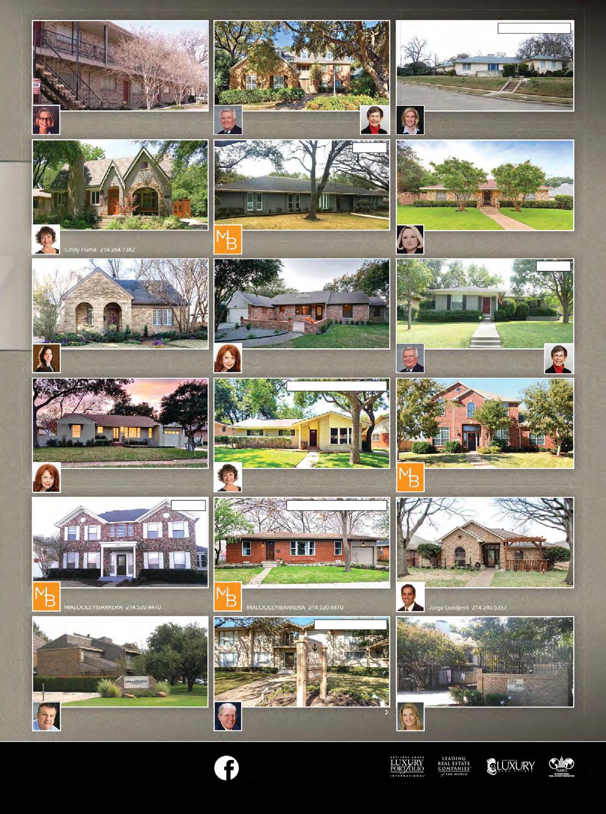 7051 CASA LOMA $474,000 Updated Tudor 3/2 pool Cindy Hume 214.264.7382 7135 LEAMEADOW Gorgeous 4/3/2 updated w/ pool & yard MALOOLEY|BARRERA 214.520.4410 6501 MCCOMMAS $385,000 3/2.1/2 home in Bob-O-Link meticulously maintained Mary Poss 214.692.0000 1636 SAVAGE 4/2.1/2 Fantastic pool and yard MALOOLEY|BARRERA 214.520.4410 9702 CLOISTER $174,000 3/1.5/1 Car/Updated/Open Floor Plan MALOOLEY|BARRERA 214.520.4410 6924 GLACIER $157,900 3/2/2 Beautifully updated home in East Dallas Jorge Goldsmit 214.245.5357 5122 GOODWIN $382,000 3/2 /1 Wonderfully Updated Traditional! Margot Strong 214.415.6640 9923 LOSA $347,000 3/2.1/2 Renovation in Casa Linda Estates Edwina Dye 214.674.3937 6430 RUNNEMEDE Traditional 3/2/2 Open floorplan with many upgrades Dick Clements Group 214.824.3784 1634 MCCOSH $254,900 3/2.1/1 Stunning Renovated home at White Rock Lake Edwina Dye 214.674.3937 10822 CAPROCK $245,000 Updated 4/3/2 in Pretty Lochwood Cindy Hume 214.264.7382 4305 LAUREN $239,000 4/3.1/3 Gated Lakefront Community MALOOLEY|BARRERA 214.520.4410 5808 ORAM $650,000 10 unit apartment with long time tenants Patti Flanders 214.682.0000 8735 VISTA VIEW $579,500 Magnificent 3 story home Dick Clements Group 214.824.3784 6741 ALEXANDER $499,000 Excellent Lakewood redo opportunity on .4 acres! Kim Sinnott 214.536.8786 ©2013. Equal Housing Opportunity. facebook.com/ebbyhalliday NEW LISTING CONTRACT PENDING CONTRACT PENDING SOLD SOLD 11128 VALLEY DALE A $79,000 2/2 condo, Pristine lower unit fully updated Ralph Vanduzee 214.692.0000 6646 E LOVERS #1804 $28,900 2/1 condo with dramatic vaulted ceilings, firplace & wet bar Julie Pillans 214.692.0000 5148 AMESBURY #219D $84,500 2/2 updated in great location Jim Harp 214.692.0000 SOLD NEW LISTING