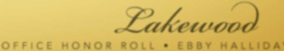 6713 Sondra 4/3.5/2 + Pool $795,375 / Hickman+Weber Group 214-355-3122 1022 Brentwood 4/3.5/3LA/2 $280,000 / Meg Skinner 214-924-5393 6027 Ellsworth Charming 3/2/1 $315,000 / Kim Sinnott 214-536-8786 6133 Saratoga Circle 3/2/2 Totally Remodeled $347,800 / Kelly Nolan 214-728-7301 528 Southridge Way 3/2.5/2 with Gameroom The Clements Group 214-824-3784 1508 N. Buckner 3/2.5/1 Acre+Lot $399,900 / Meg Skinner 214-924-5393 7236 Wake Forrest Mid-Century Modern with Gourmet Kitchen $235,000 / Joe Lyon 214-868-0001 6110 Tremont 3/2.5/2 Townhome $348,000 / Terri M. Raith 214-803-4578 6026 Birchbrook #115 2/2 Updated condo! $115,000 / Kelly Nolan 214-728-7301 10846 Fernald 4/2.5/3 LAs on Great Lot $324,900 / Meg Skinner 214-924-5393 10234 Bridgegate Way 4/3/2LA/2Car Brick Ranch $269,900 / George Haynes 469-774-7405 6118 Bryan Parkway 2/1 Prairie-Style in Munger Place $229,500 / Paige Whiteside Group 214-355-3125 9615 Mossridge 3/2 with Basement/White Rock Elementary $257,300 / Mary Rinne 214-552-6735 3311 Blackburn #104 2 Blocks from Katy Trail & West Village $155,000 / CJ Prince 972-978-8986 SOLD ©2011.Equal Housing Opportunity. 214-341-0330 10233 East Northwest Highway, Suite 438 6441 East Mockingbird For all your mortgage needs. Ta l License mmie Mitchel 214-349-7836 #13272 ©2011.Equal Housing Opportunity. 214-341-0330 214-826-0316 10233 East Northwest Highway, Suite 438 6441 East Mockingbird Top Income Meg Skinner 214-924-5393 Top Volume Kelly Nolan 214-728-7301 Top Producers www.facebook.com/ebbylakewood Supporters of ©2011.Equal Housing Opportunity. 214-341-0330 214-826-0316 10233 East Northwest Highway, Suite 438 6441 East Mockingbird ©2011.Equal Housing Opportunity. 214-341-0330 214-826-0316 10233 East Northwest Highway, Suite 438 6441 East Mockingbird ©2011.Equal Housing Opportunity. 214-341-0330 214-826-0316 10233 East Northwest Highway, Suite 438 6441 East Mockingbird NEW LISTING Top Group The Clements Group 214-824-3784 NEW PRICE