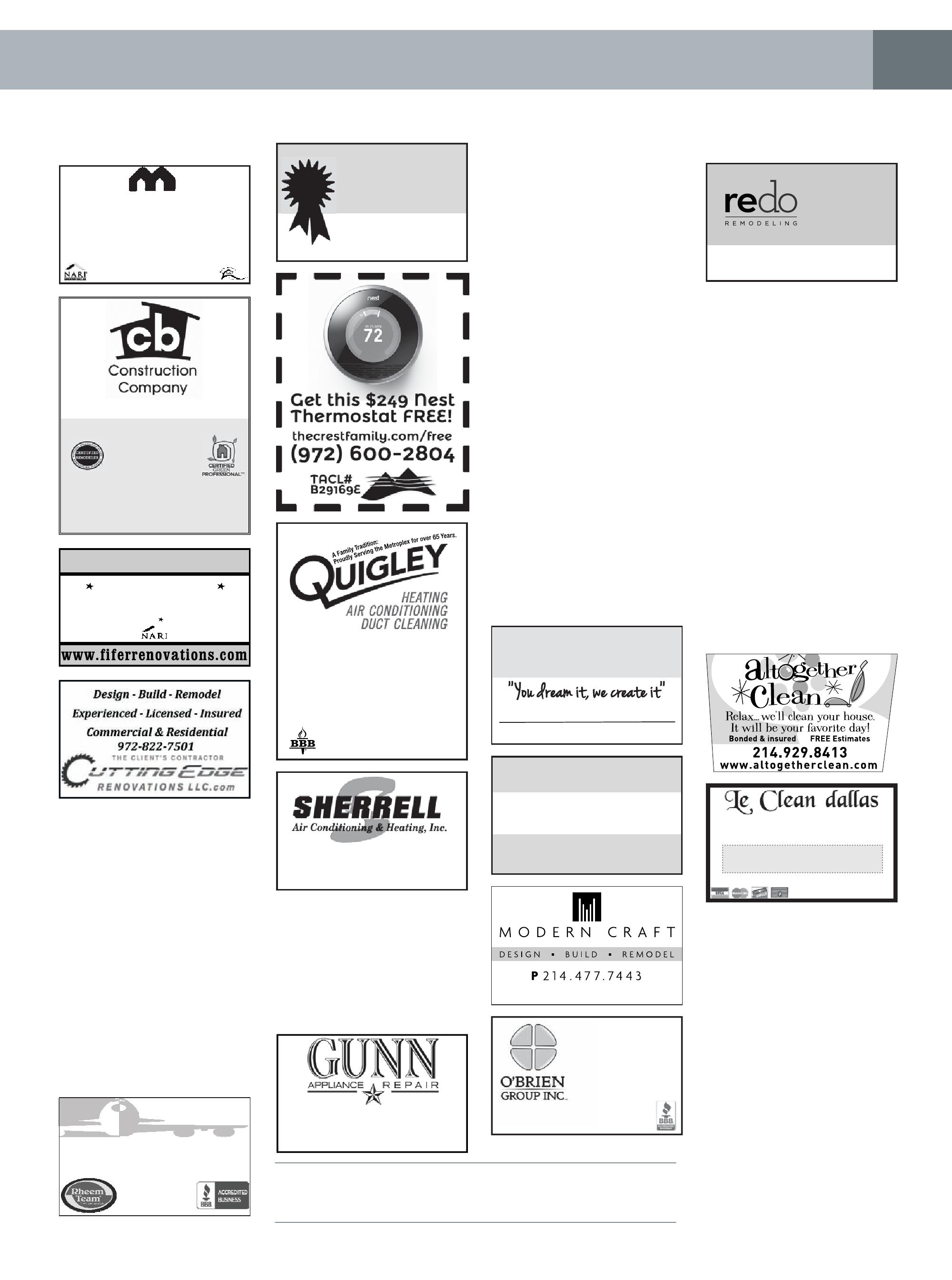 ADVOCATE PUBLISHING does not pre-screen, recommend or investigate the advertisements and/or Advertisers published in our magazines. As a result, Advocate Publishing is not responsible for your dealings with any Advertiser. Please ask each Advertiser that you contact to show you the necessary licenses and/or permits required to perform the work you are requesting. Advocate Publishing takes comments and/or complaints about Advertisers seriously, and we do not publish advertisements that we know are inaccurate, misleading and/ or do not live up to the standards set by our publications. If you have a legitimate complaint or positive comment about an Advertiser, please contact us at 214-560-4203. Advocate Publishing recommends that you ask for and check references from each Advertiser that you contact, and we recommend that you obtain a written statement of work to be completed, and the price to be charged, prior to approving any work or providing an Advertiser with any deposit for work to be completed.