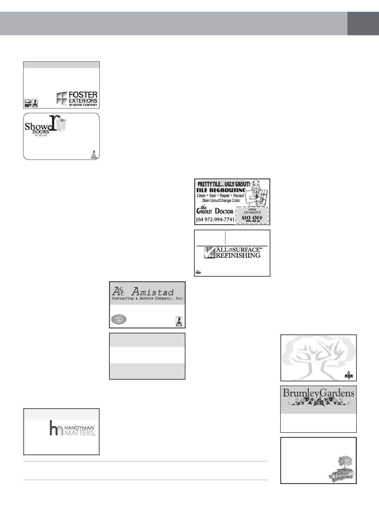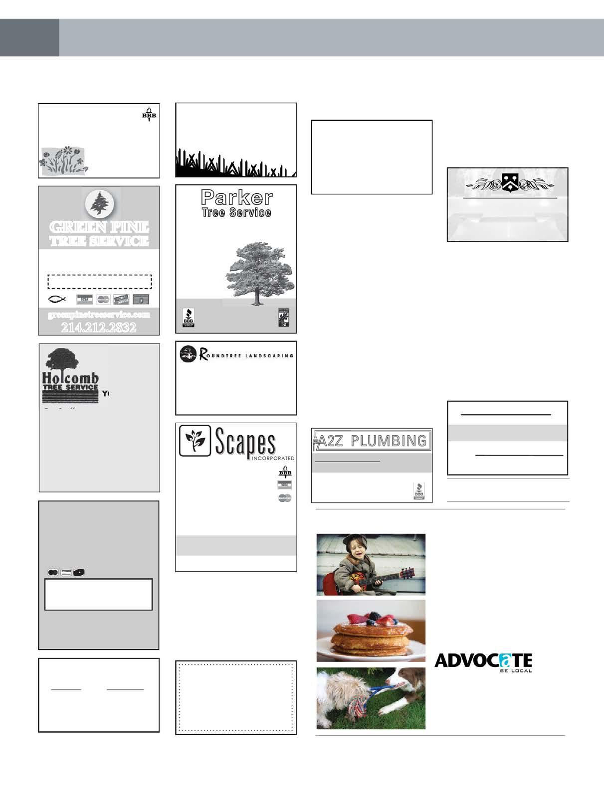 ADVOCATE PUBLISHING does not pre-screen, recommend or investigate the advertisements and/or Advertisers published in our magazines. As a result, Advocate Publishing is not responsible for your dealings with any Advertiser. Please ask each Advertiser that you contact to show you the necessary licenses and/or permits required to perform the work you are requesting. Advocate Publishing takes comments and/or complaints about Advertisers seriously, and we do not publish advertisements that we know are inaccurate, misleading and/or do not live up to the standards set by our publications. If you have a legitimate complaint or positive comment about an Advertiser, please contact us at 214560-4203. Advocate Publishing recommends that you ask for and check references from each Advertiser that you contact, and we recommend that you obtain a written statement of work to be completed, and the price to be charged, prior to approving any work or providing an Advertiser with any deposit for work to be completed.