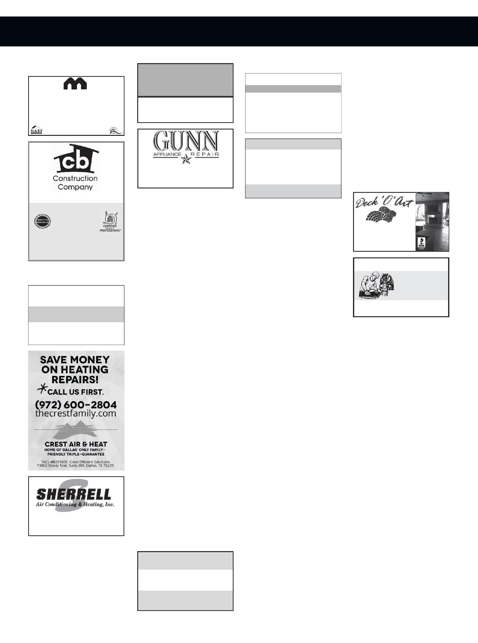 ADVOCATE PUBLISHING does not pre-screen, recommend or investigate the advertisements and/or Advertisers published in our magazines. As a result, Advocate Publishing is not responsible for your dealings with any Advertiser. Please ask each Advertiser that you contact to show you the necessary licenses and/or permits required to perform the work you are requesting. Advocate Publishing takes comments and/ or complaints about Advertisers seriously, and we do not publish advertisements that we know are inaccurate, misleading and/or do not live up to the standards set by our publications. If you have a legitimate complaint or positive comment about an Advertiser, please contact us at 214-5604203. Advocate Publishing recommends that you ask for and check references from each Advertiser that you contact, and we recommend that you obtain a written statement of work to be completed, and the price to be charged, prior to approving any work or providing an Advertiser with any deposit for work to be completed.