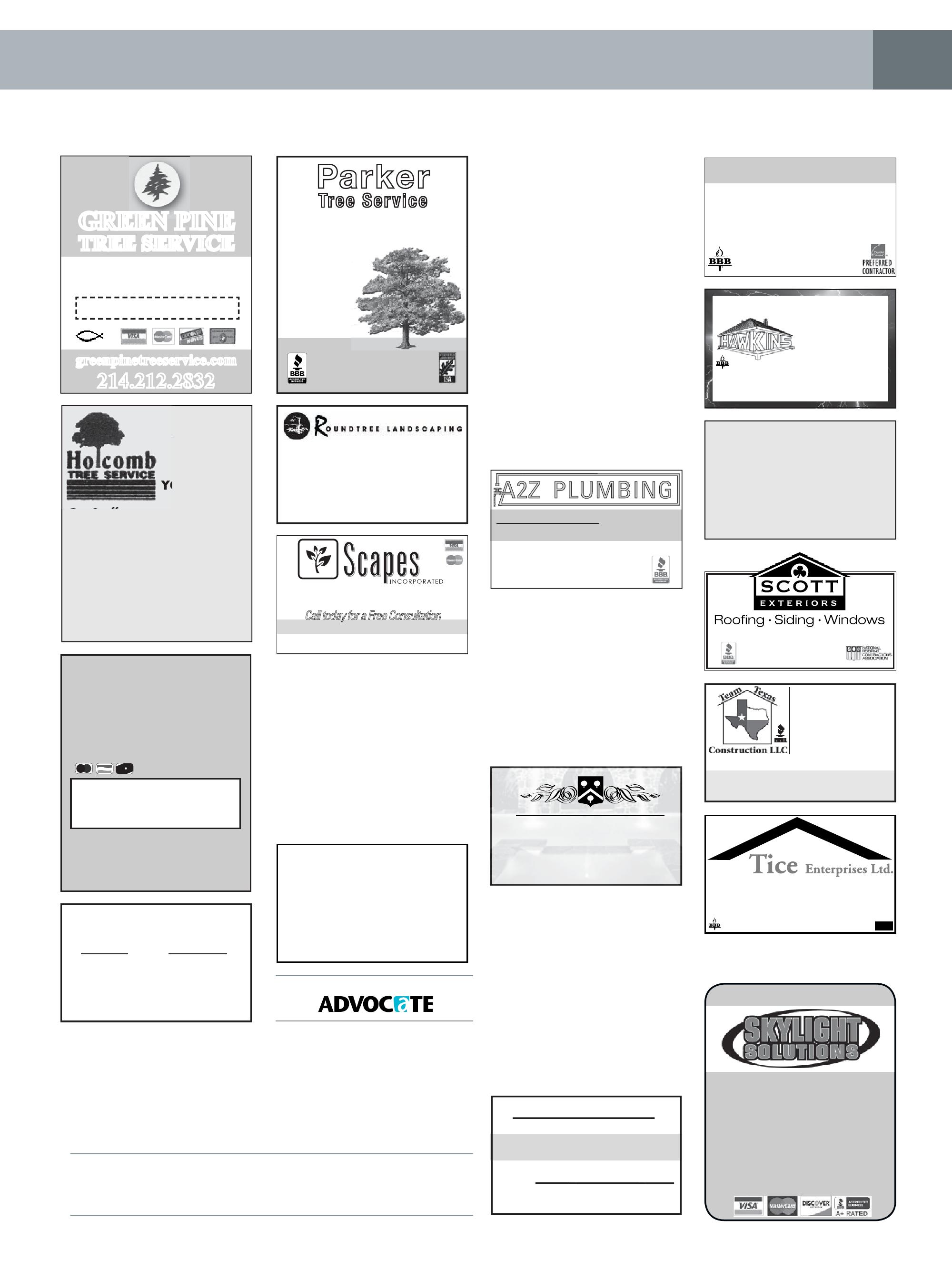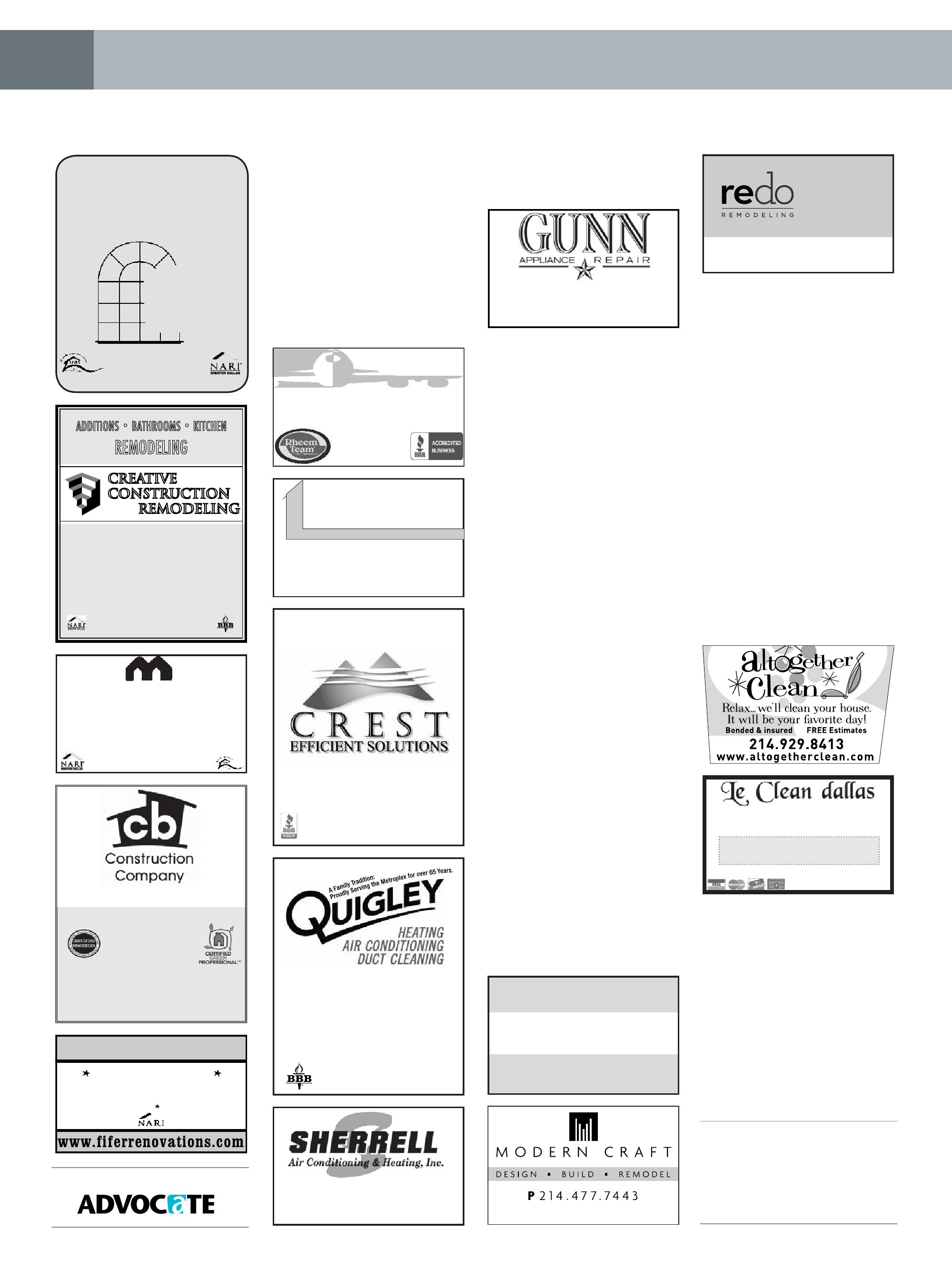 ADVOCATE PUBLISHING does not pre-screen, recommend or investigate the advertisements and/or Advertisers published in our magazines. As a result, Advocate Publishing is not responsible for your dealings with any Advertiser. Please ask each Advertiser that you contact to show you the necessary licenses and/or permits required to perform the work you are requesting. Advocate Publishing takes comments and/or complaints about Advertisers seriously, and we do not publish advertisements that we know are inaccurate, misleading and/or do not live up to the standards set by our publications. If you have a legitimate complaint or positive comment about an Advertiser, please contact us at 214-560-4203. Advocate Publishing recommends that you ask for and check references from each Advertiser that you contact, and we recommend that you obtain a written statement of work to be completed, and the price to be charged, prior to approving any work or providing an Advertiser with any deposit for work to be completed.