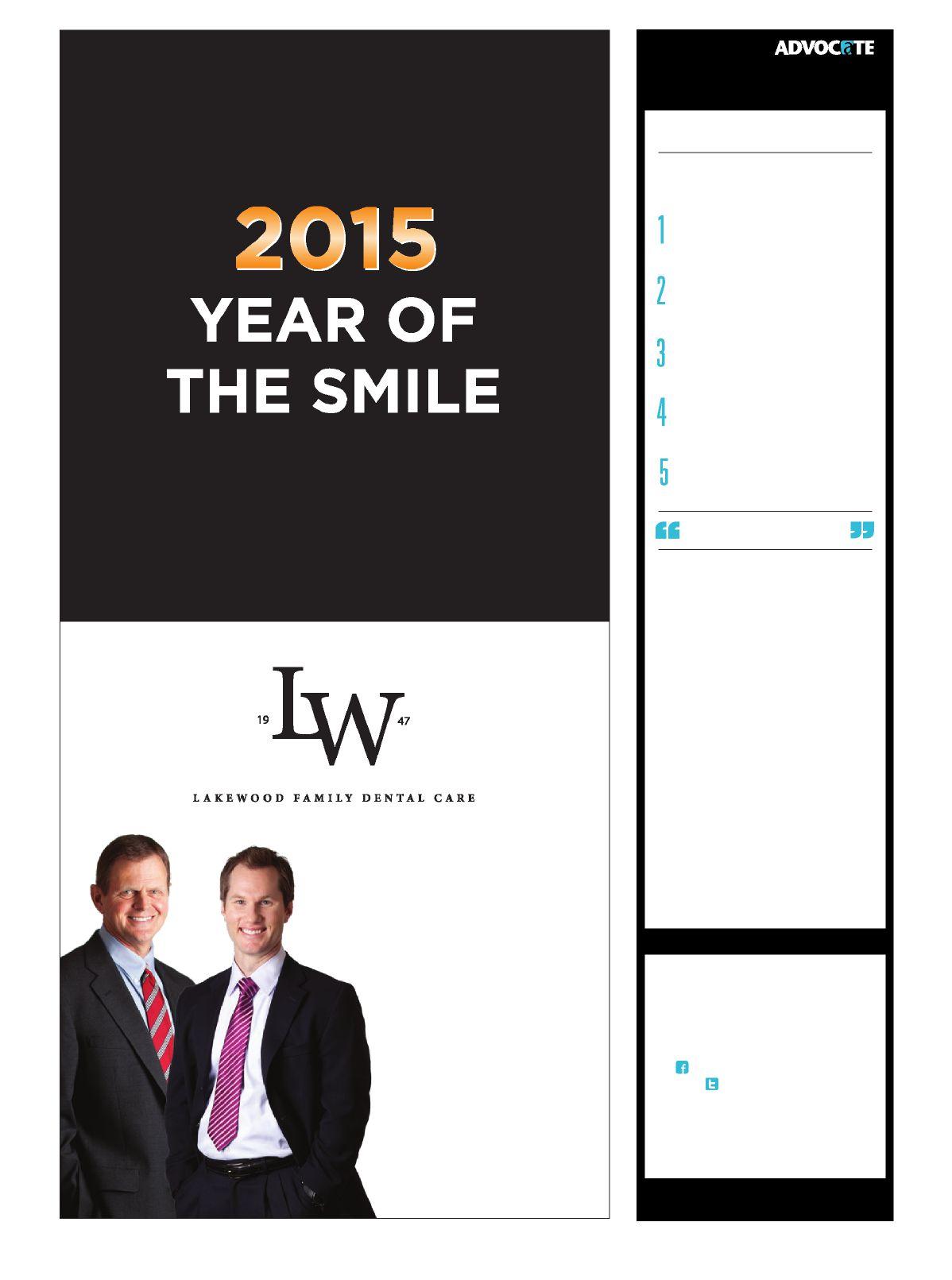 OPENING Remarks be local be local most used logo black and white used for small horizontal used for small vertical and social media Advocate Media 6301 Gaston Avenue, Suite 820, Dallas, TX 75214 Advocate, © 2015, is published monthly by East Dallas – Lakewood People Inc. Contents of this magazine may not be reproduced. Advertisers and advertising agencies assume liability for the content of all advertisements printed, and therefore assume responsibility for any and all claims against the Advocate. The publisher reserves the right to accept or reject any editorial or advertising material. Opinions set forth in the Advocate are those of the writers and do not necessarily reflect the publisher’s viewpoint. More than 200,000 people read Advocate publications each month. Advertising rates and guidelines are available upon request. Advocate publications are available free of charge throughout our neighborhoods, one copy per reader. Advocate was founded in 1991 by Jeff Siegel, Tom Zielinski and Rick Wamre.